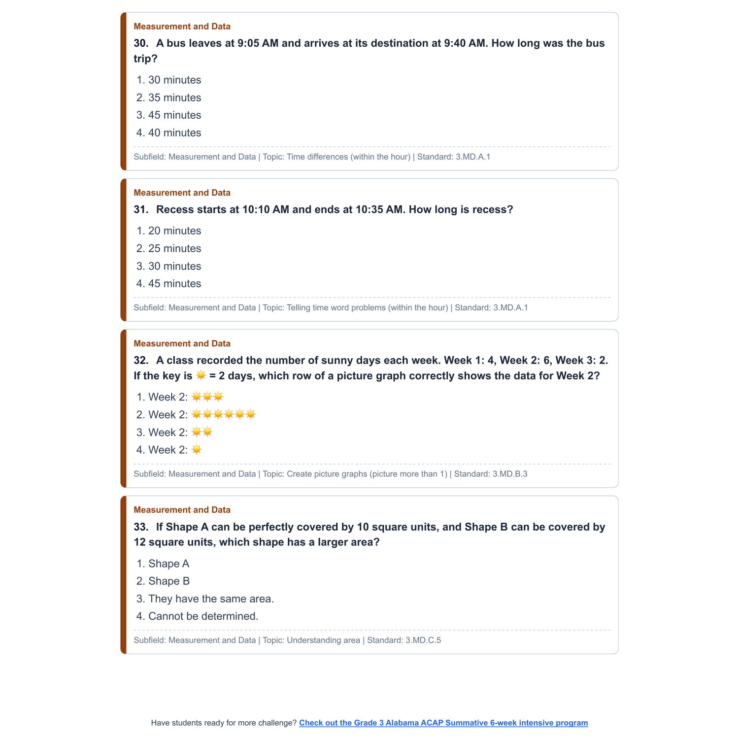 [Grade 3] Alabama ACAP Summative Math | 6-Week Test Prep | Scale Score 275-700