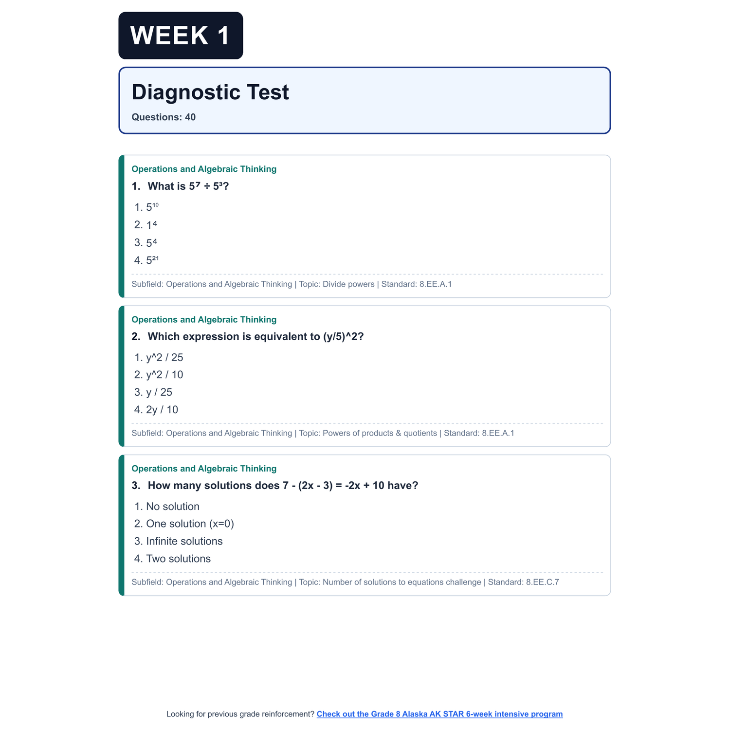 [Grade 8] Alaska AK STAR Math | 6-Week Test Prep Program | Scale Score 1450-1840