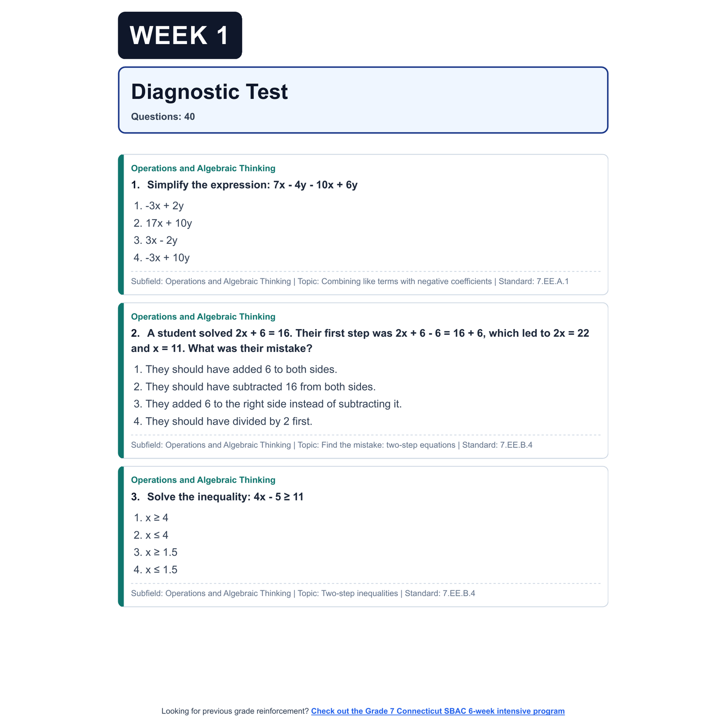 [Grade 7] Connecticut SBAC Math | 6-Week Test Prep | Scale Score 2484-2635+