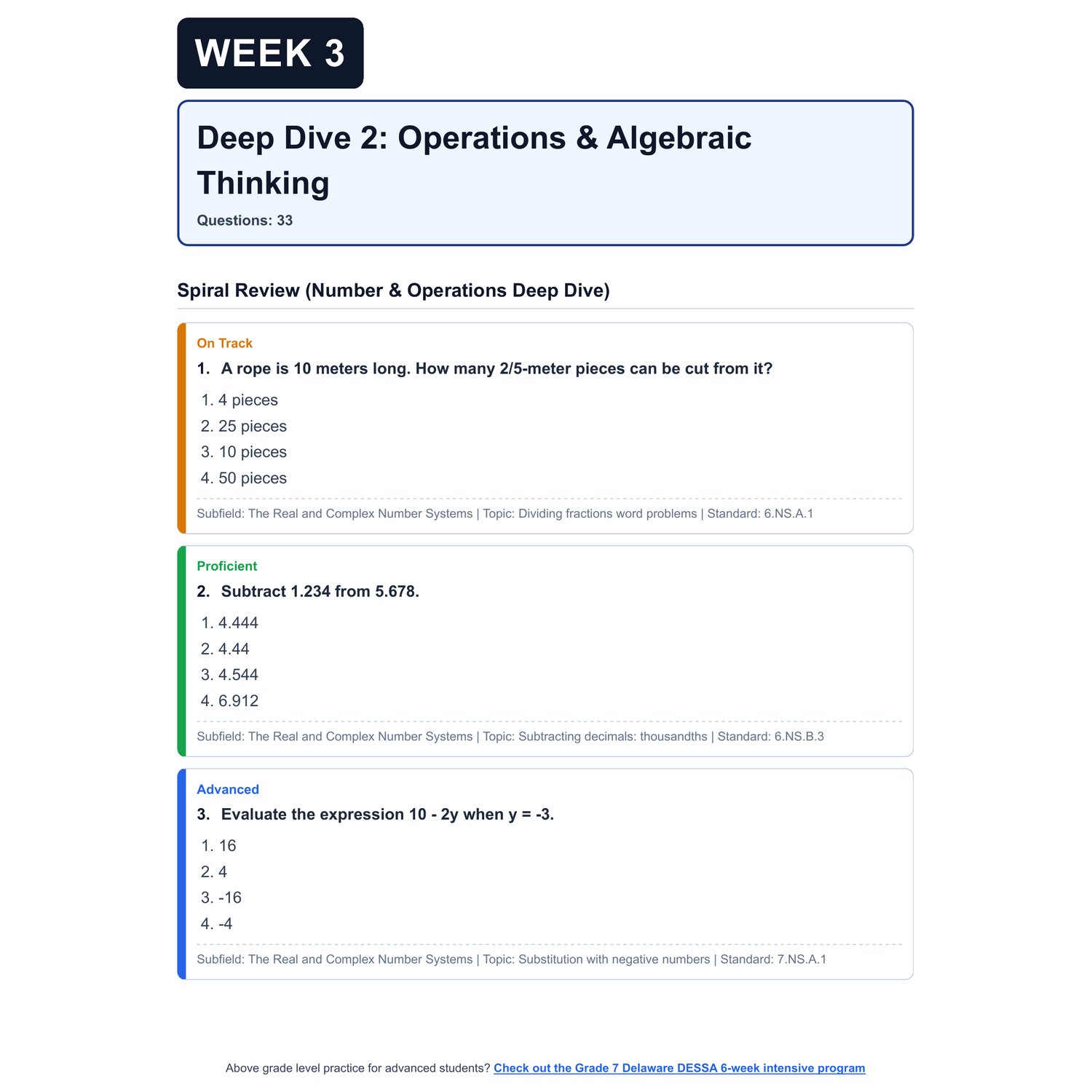 [Grade 7] Delaware DESSA Math | 6-Week Test Prep | Scale Score 2484-2635+