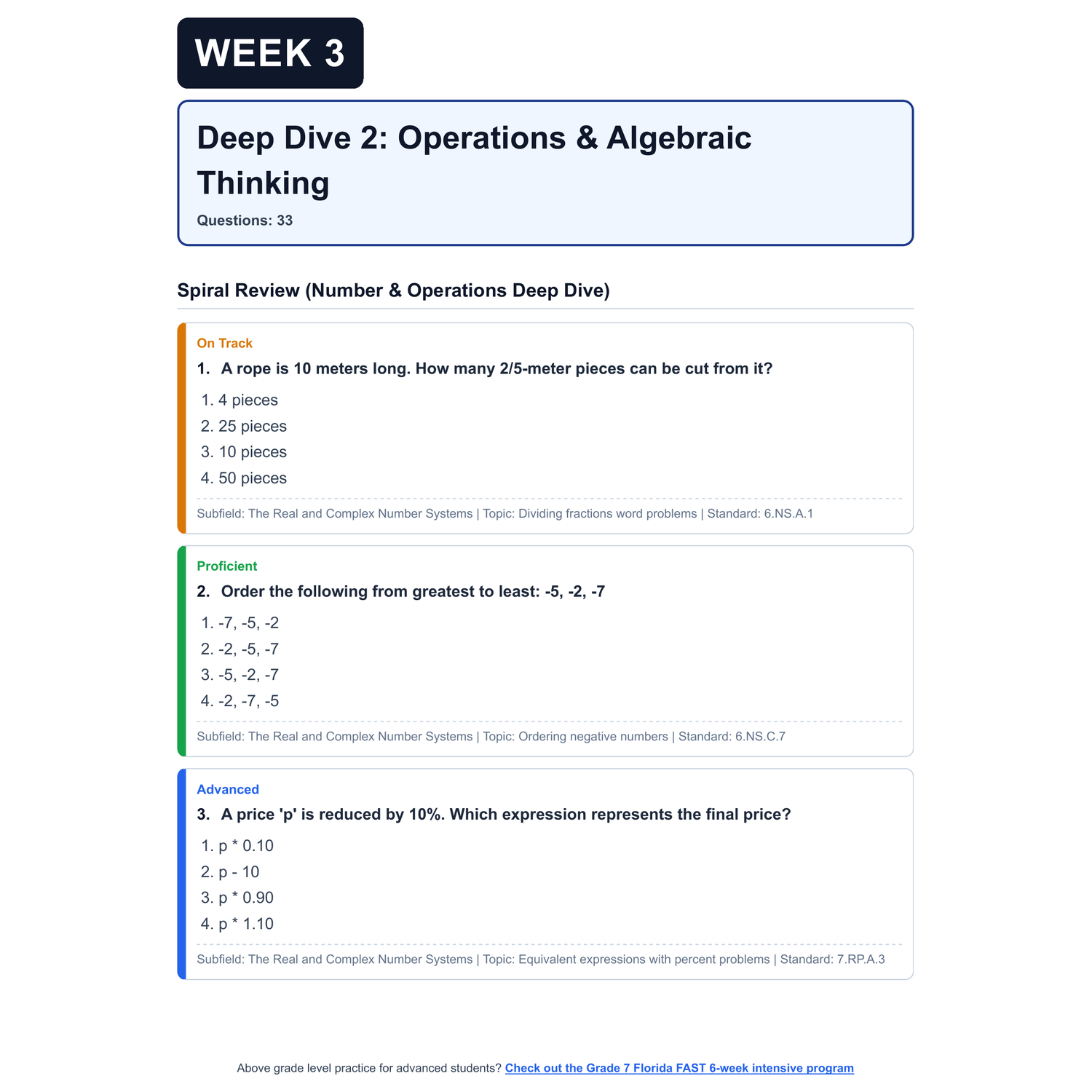 [Grade 7] Florida FAST Math | 6-Week Prep | All 4 Levels (PM3 Score 223-257+)