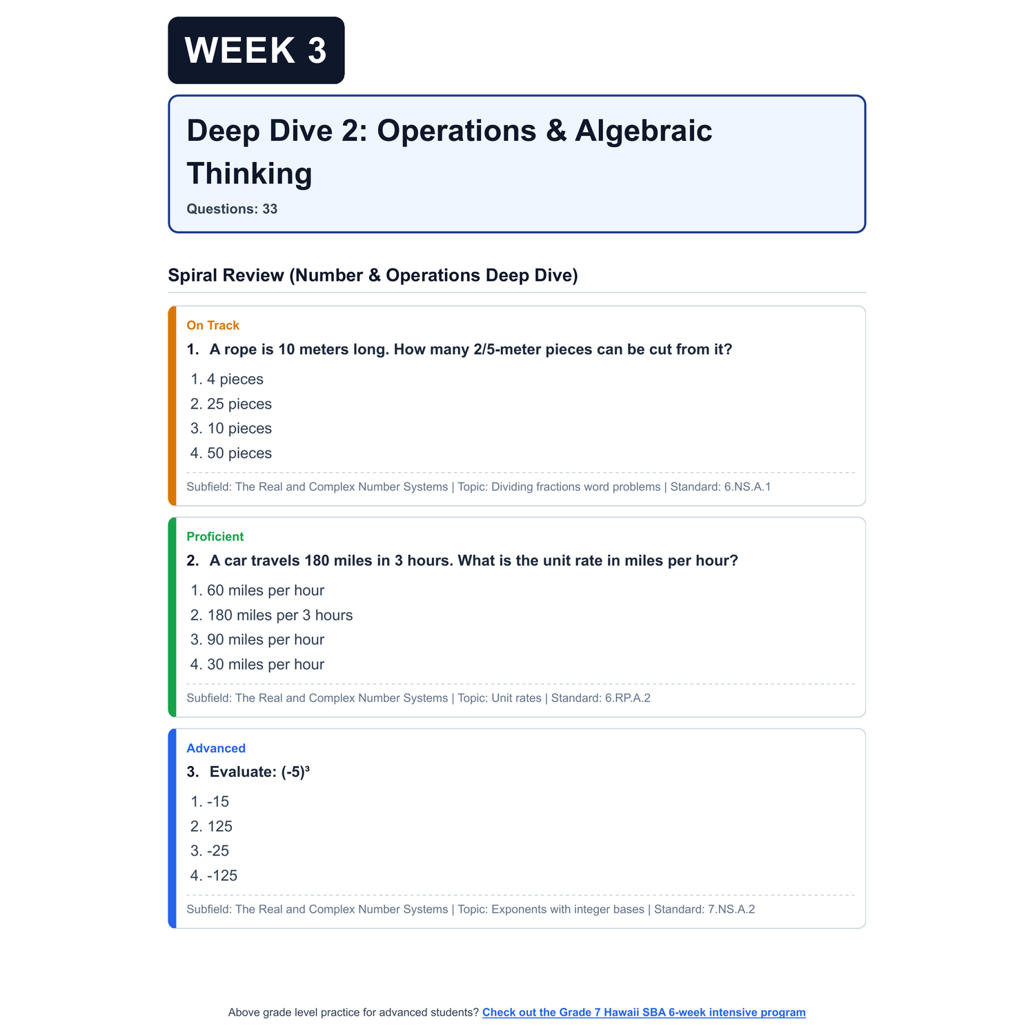 [Grade 7] Hawaii SBA Math | 6-Week Prep | All 4 Levels (Scale Score 2484-2635+)