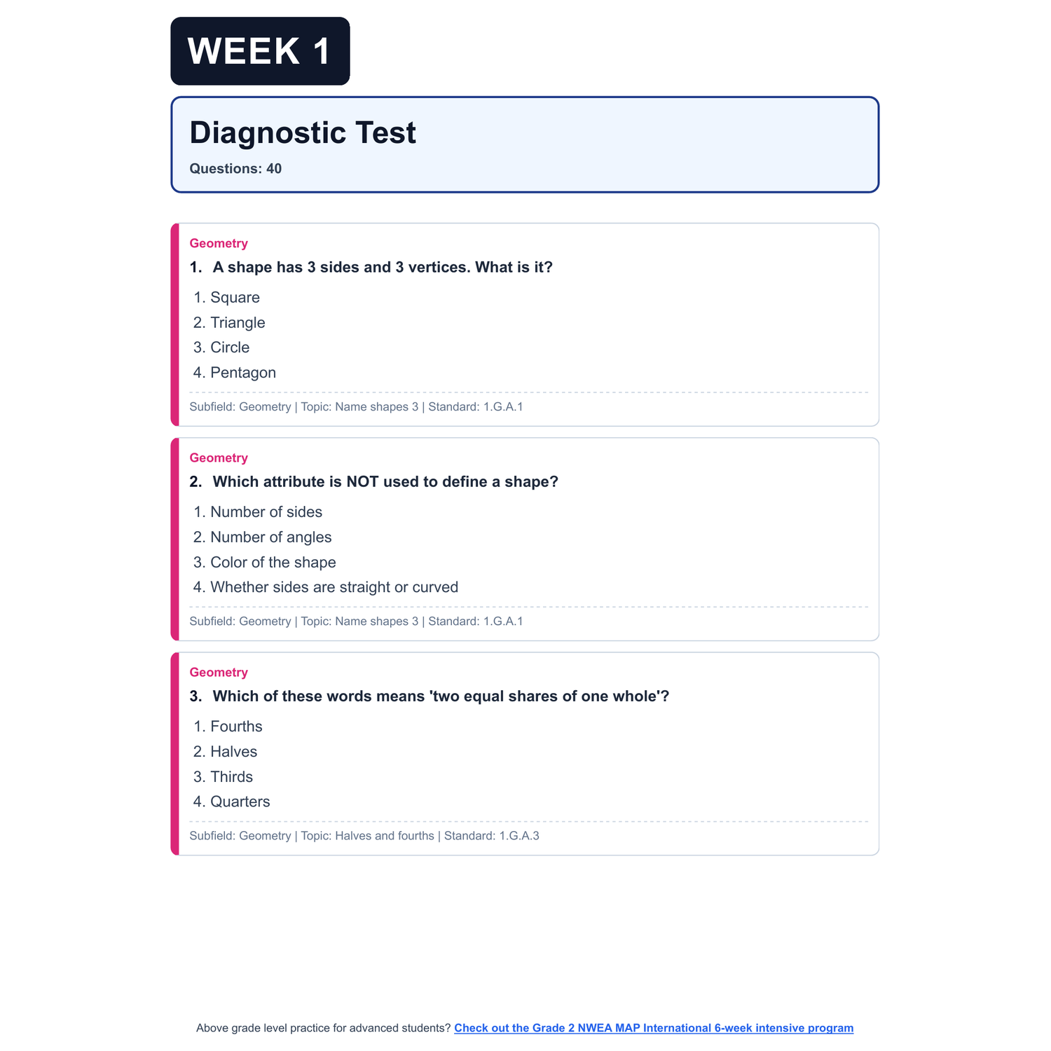 - Diagnostic Assessment: A full simulation of the real NWEA MAP International. This sets a baseline, highlights gaps, and will be used later to show growth