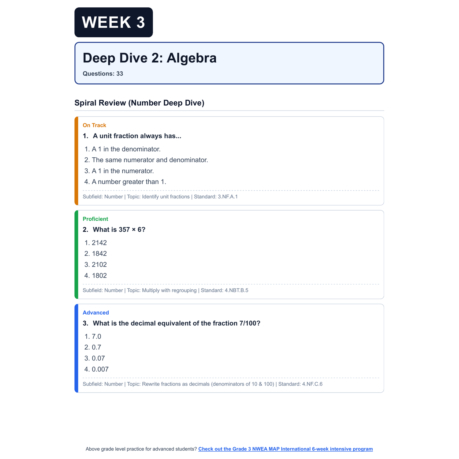 [Grade 3] NWEA MAP International Math | 6-Week Prep | All 4 Levels (RIT 201-223)