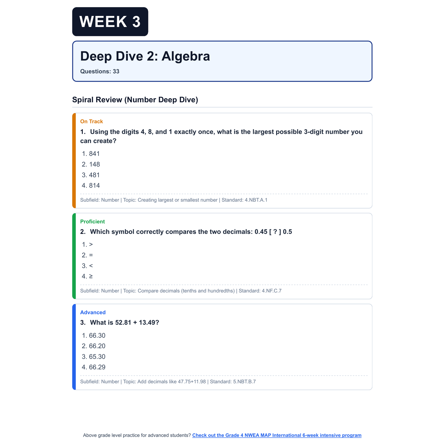 [Grade 4] NWEA MAP International Math | 6-Week Prep | All 4 Levels (RIT 211-227)