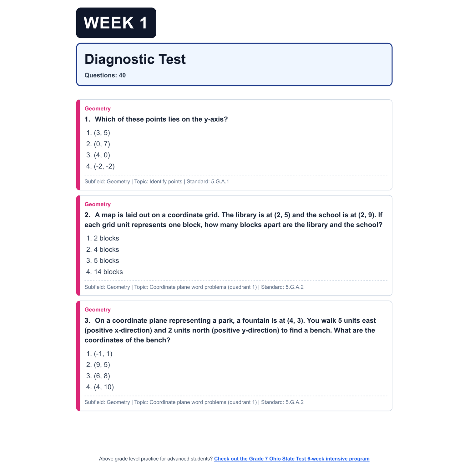 - Diagnostic Assessment: A full simulation of the real Ohio State Test. This sets a baseline, highlights gaps, and will be used later to show growth