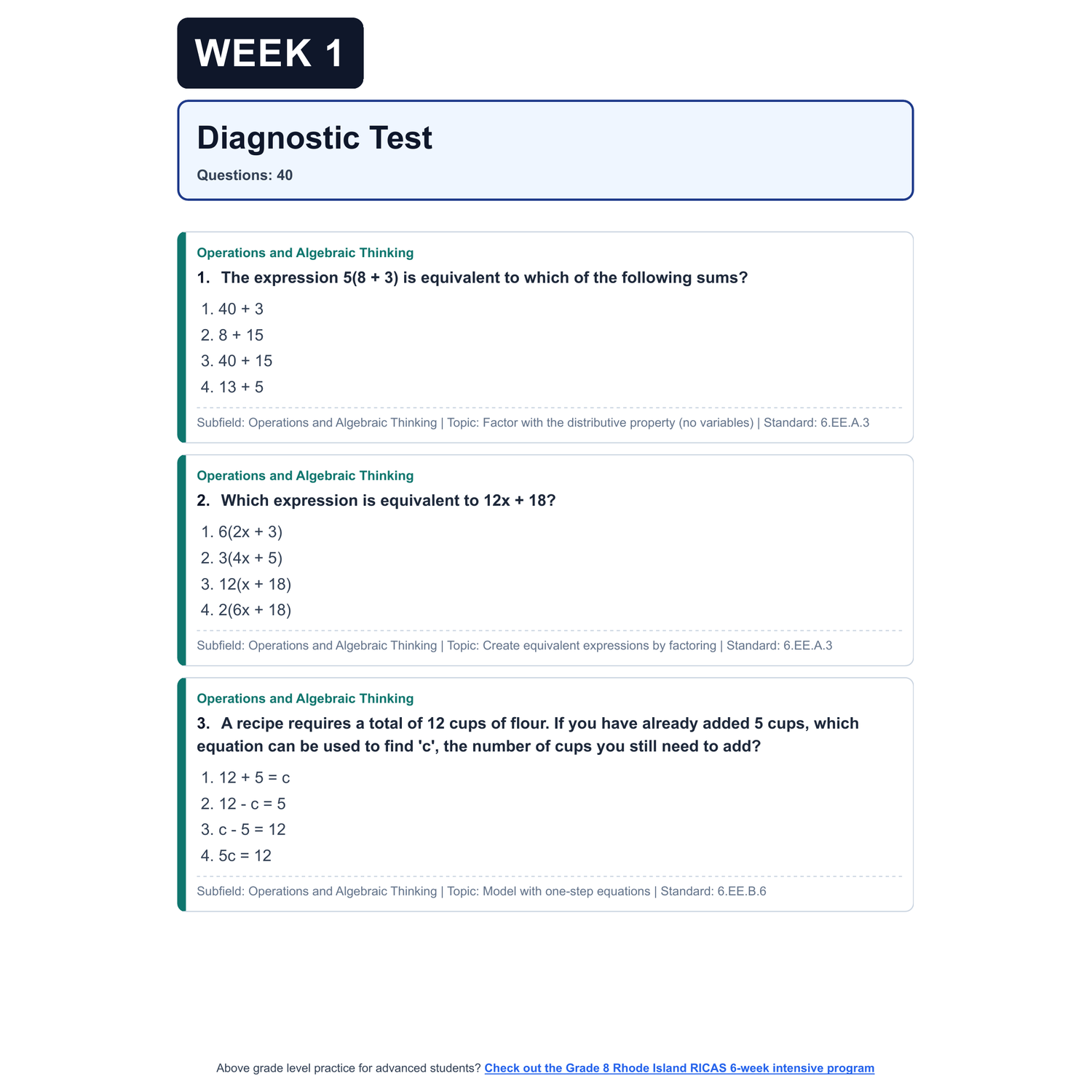 [Grade 8] Rhode Island RICAS Math | 6-Week Test Prep | Scale Score 440-560