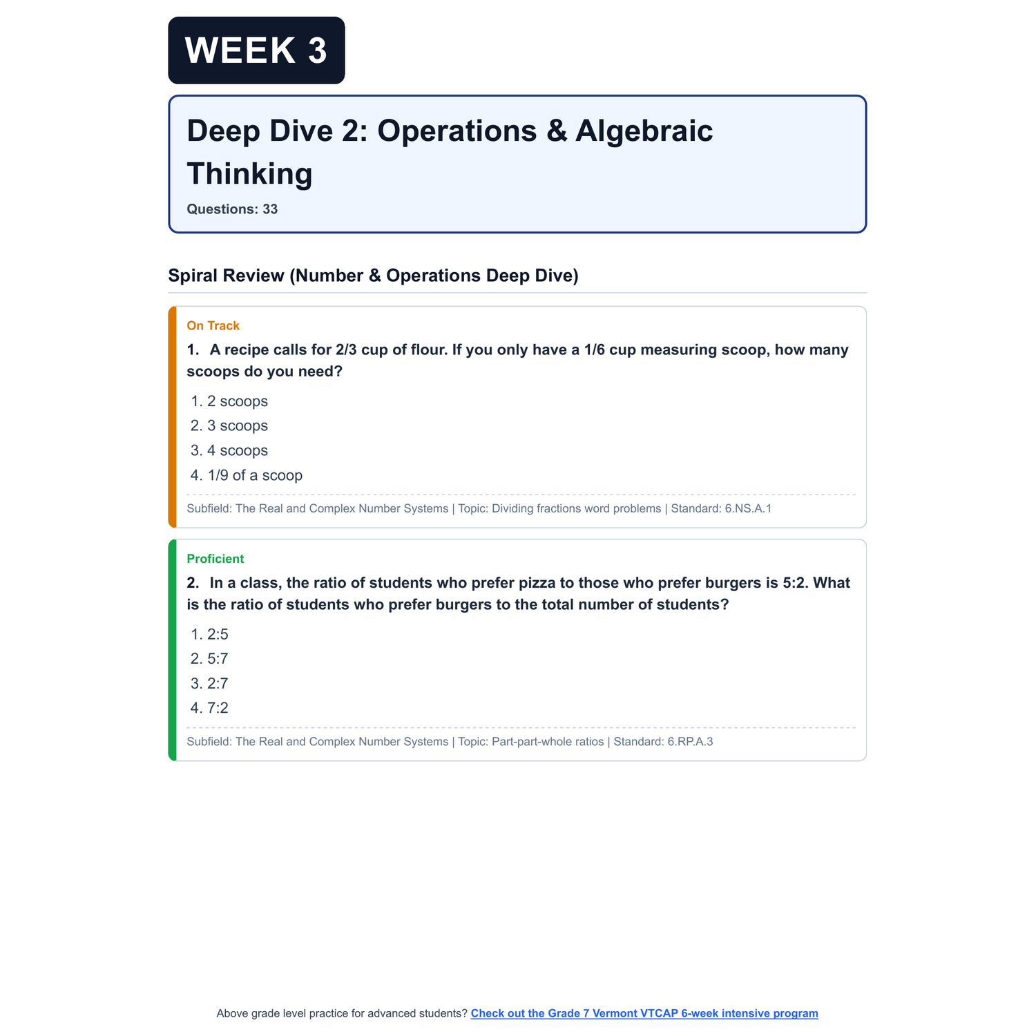 [Grade 7] Vermont VTCAP Math | 6-Week Test Prep Program | Scale Score 1500-2000