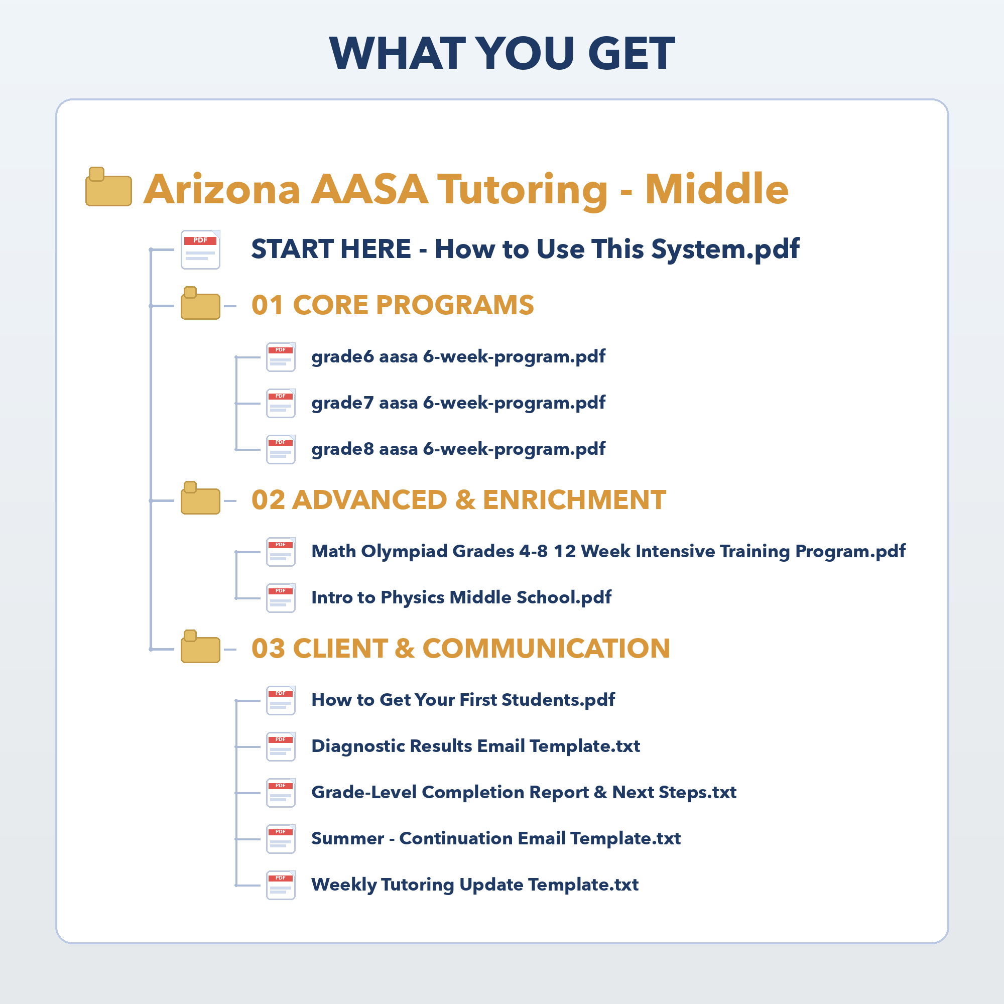 - Four email templates for parent communication: Simple, ready-to-use emails to share results, provide weekly updates, explain next steps, and guide parents toward continued tutoring in higher grades or the enrichment track.