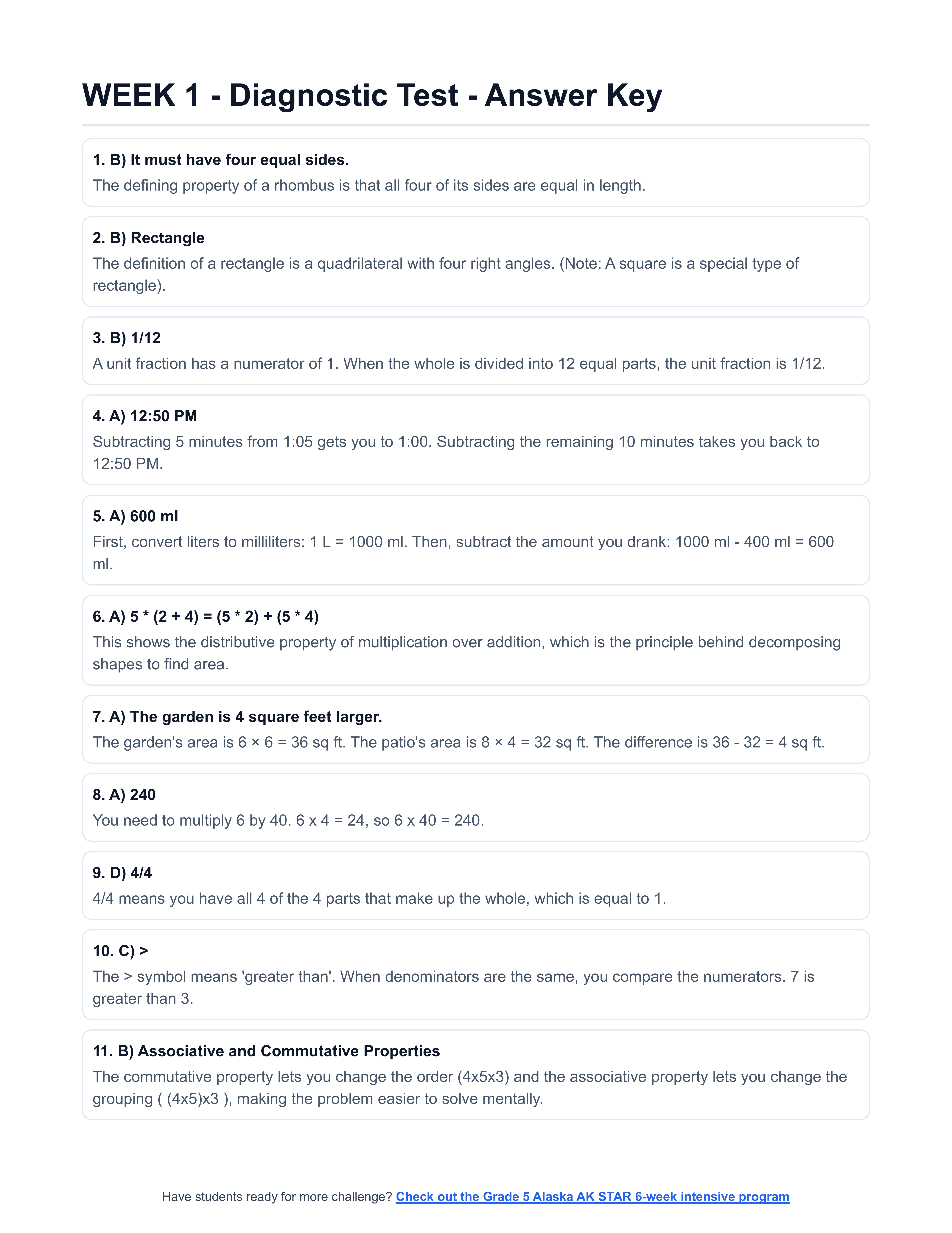 [Grade 5] Alaska AK STAR Math | 6-Week Test Prep Program | Scale Score 1420-1780