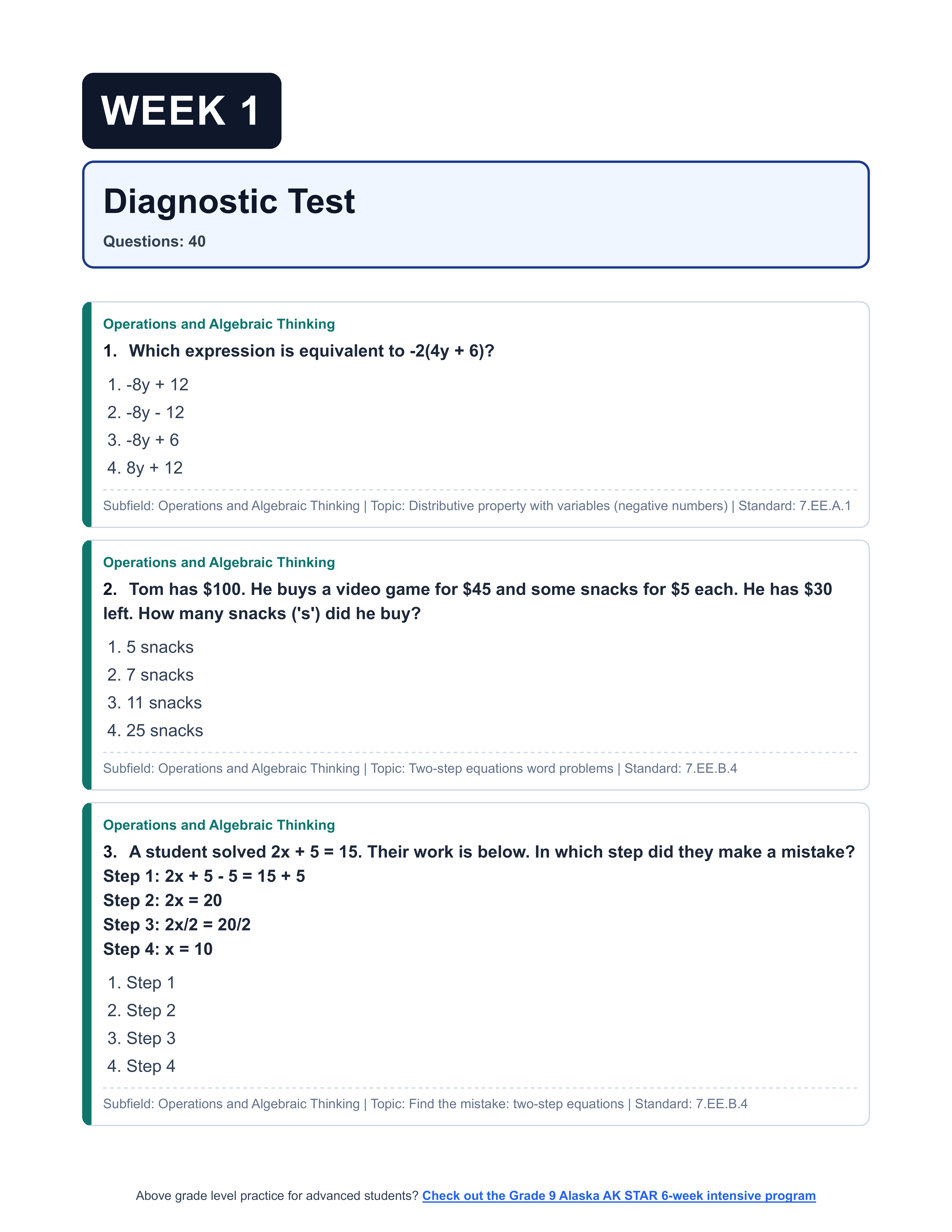 [Grade 7] Alaska AK STAR Math | 6-Week Test Prep Program | Scale Score 1440-1820