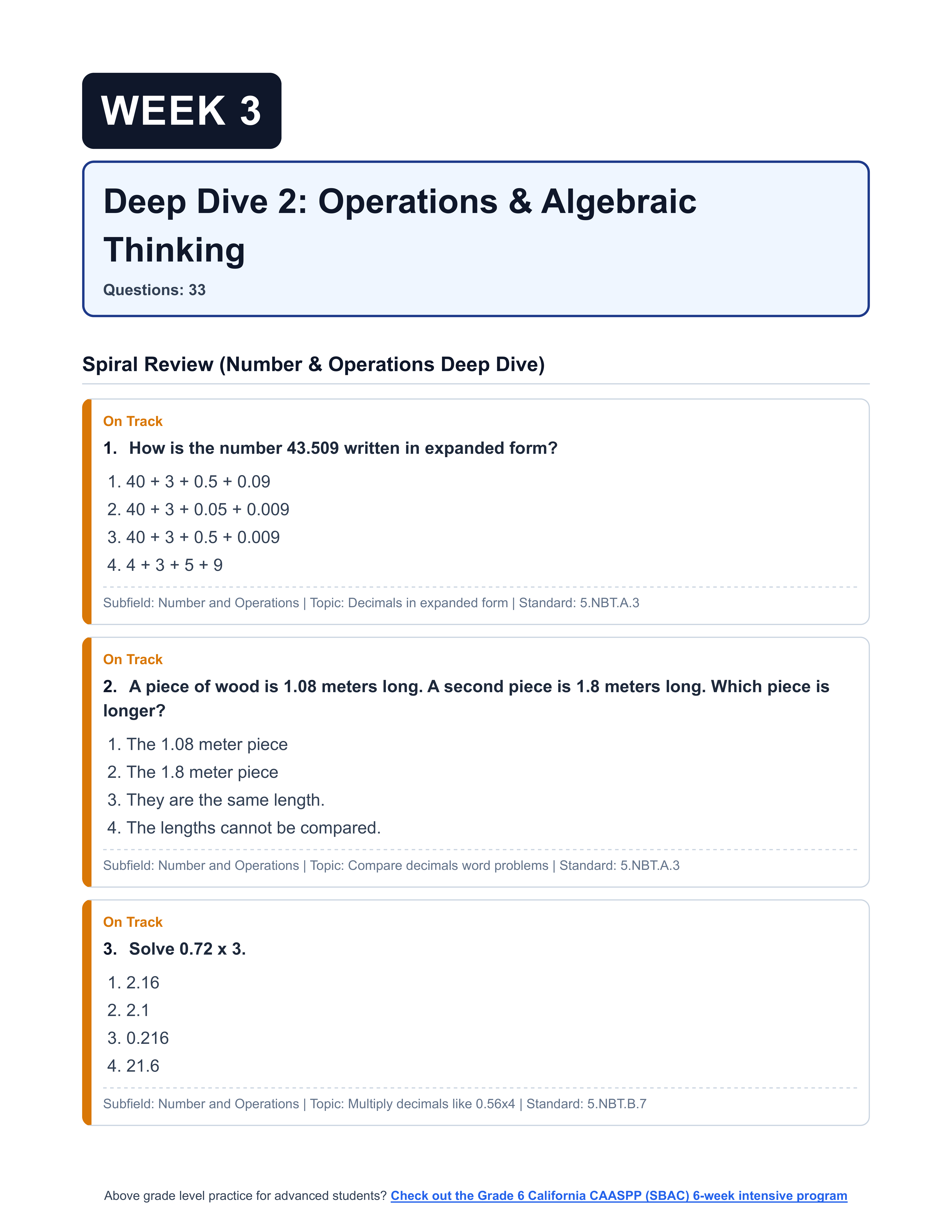 [Grade 3] California CAASPP (SBAC) Math | 6-Week Prep | Scale Score 2381-2501+