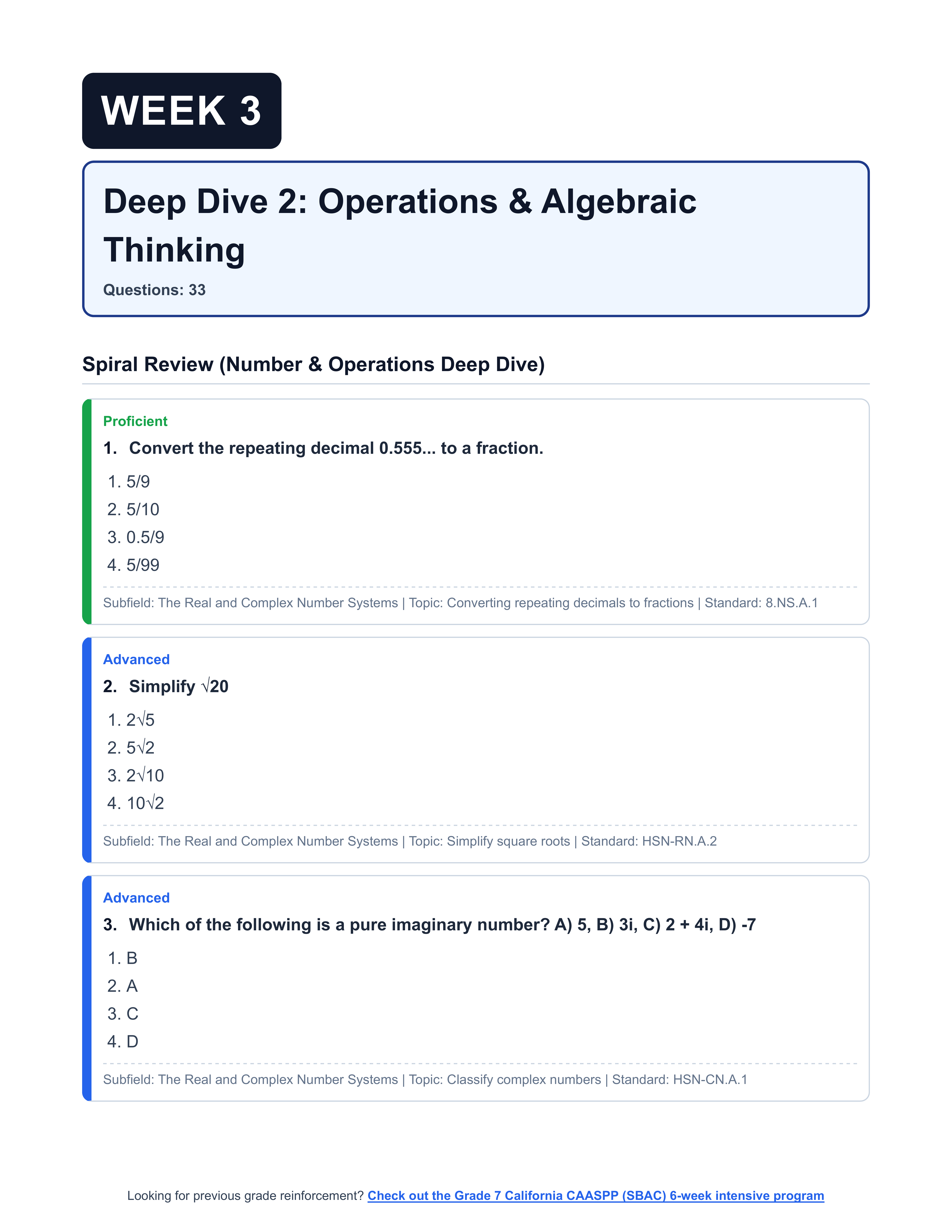 [Grade 7] California CAASPP (SBAC) Math | 6-Week Prep | Scale Score 2484-2635+