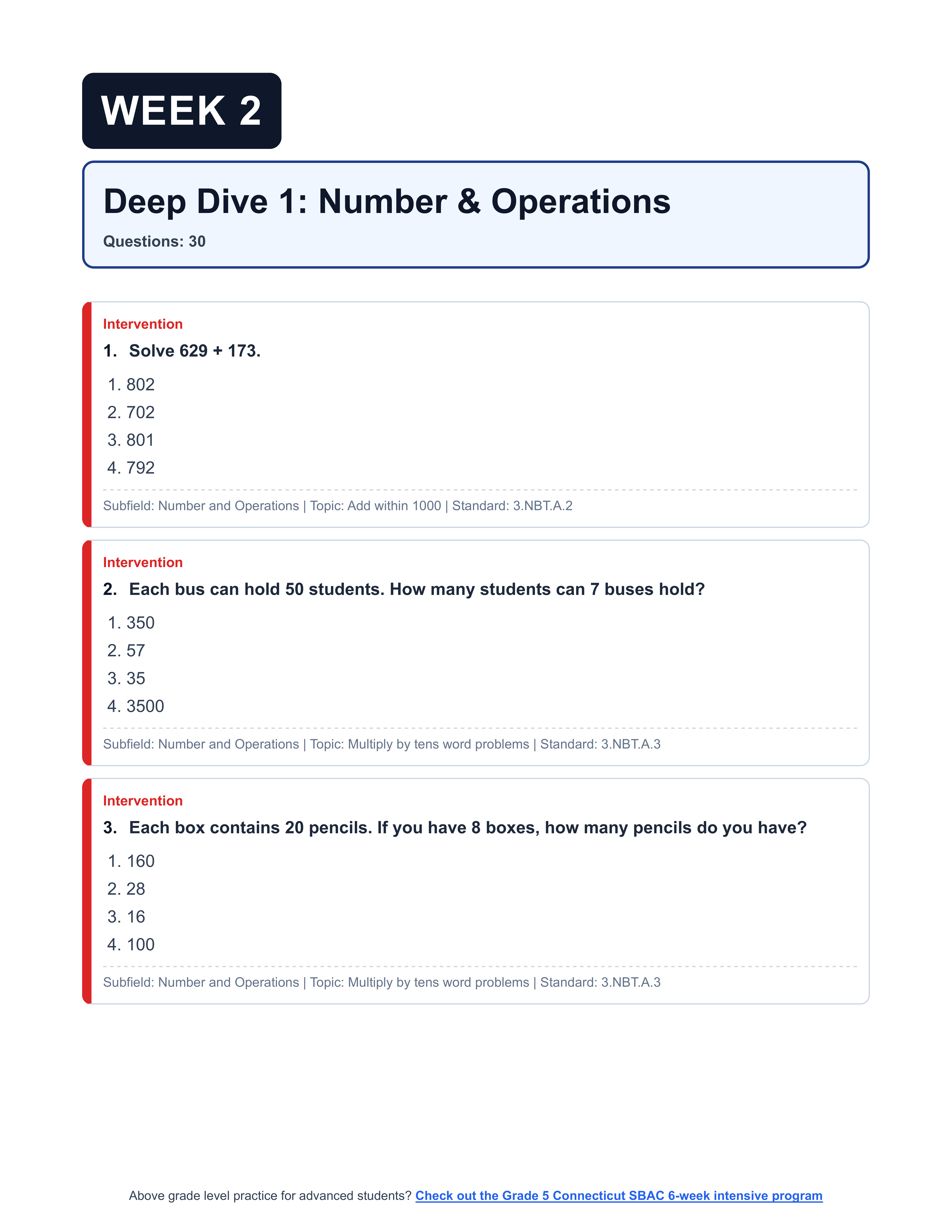 [Grade 3] Connecticut SBAC Math | 6-Week Test Prep | Scale Score 2381-2501+