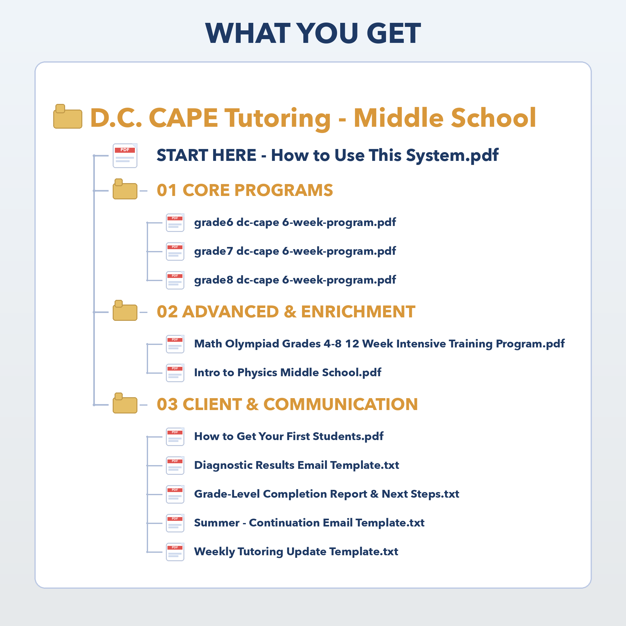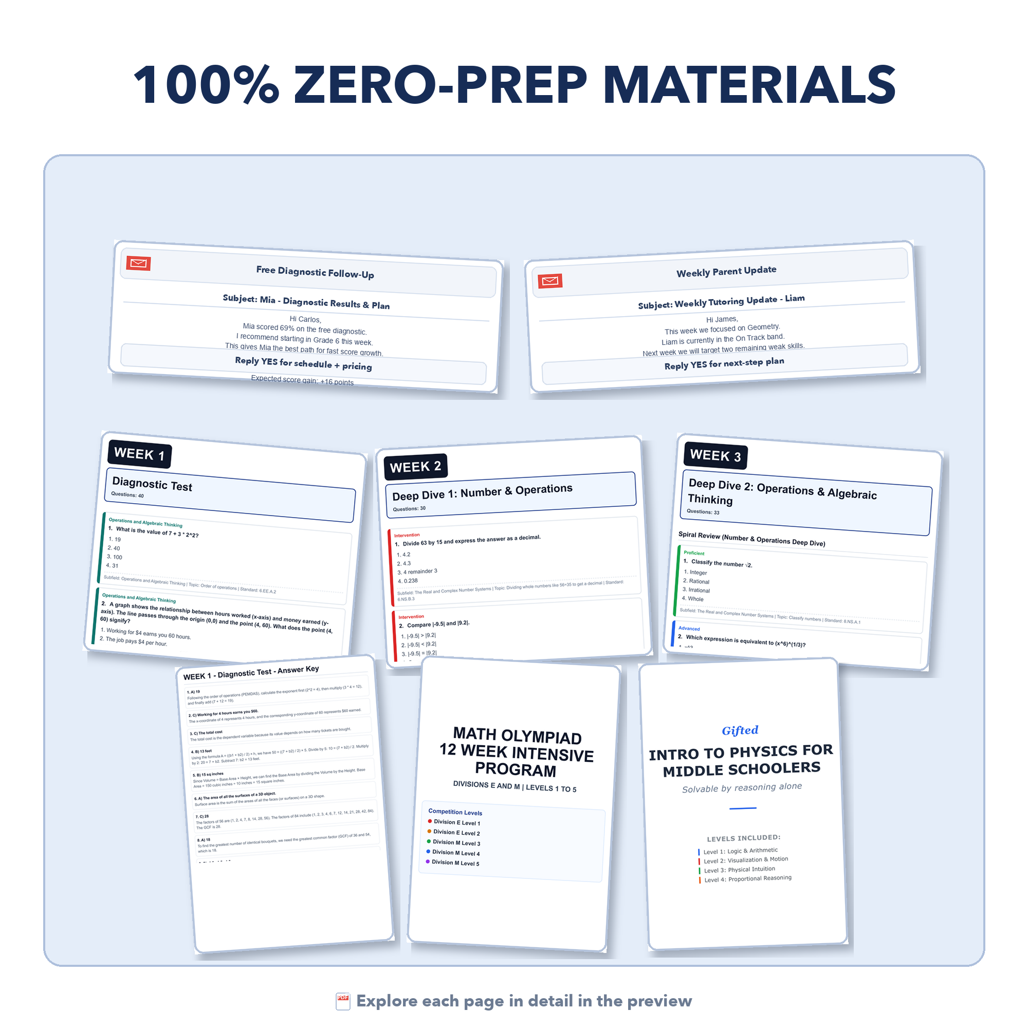 - Four email templates for parent communication: Simple, ready-to-use emails to share results, provide weekly updates, explain next steps, and guide parents toward continued tutoring in higher grades or the enrichment track.