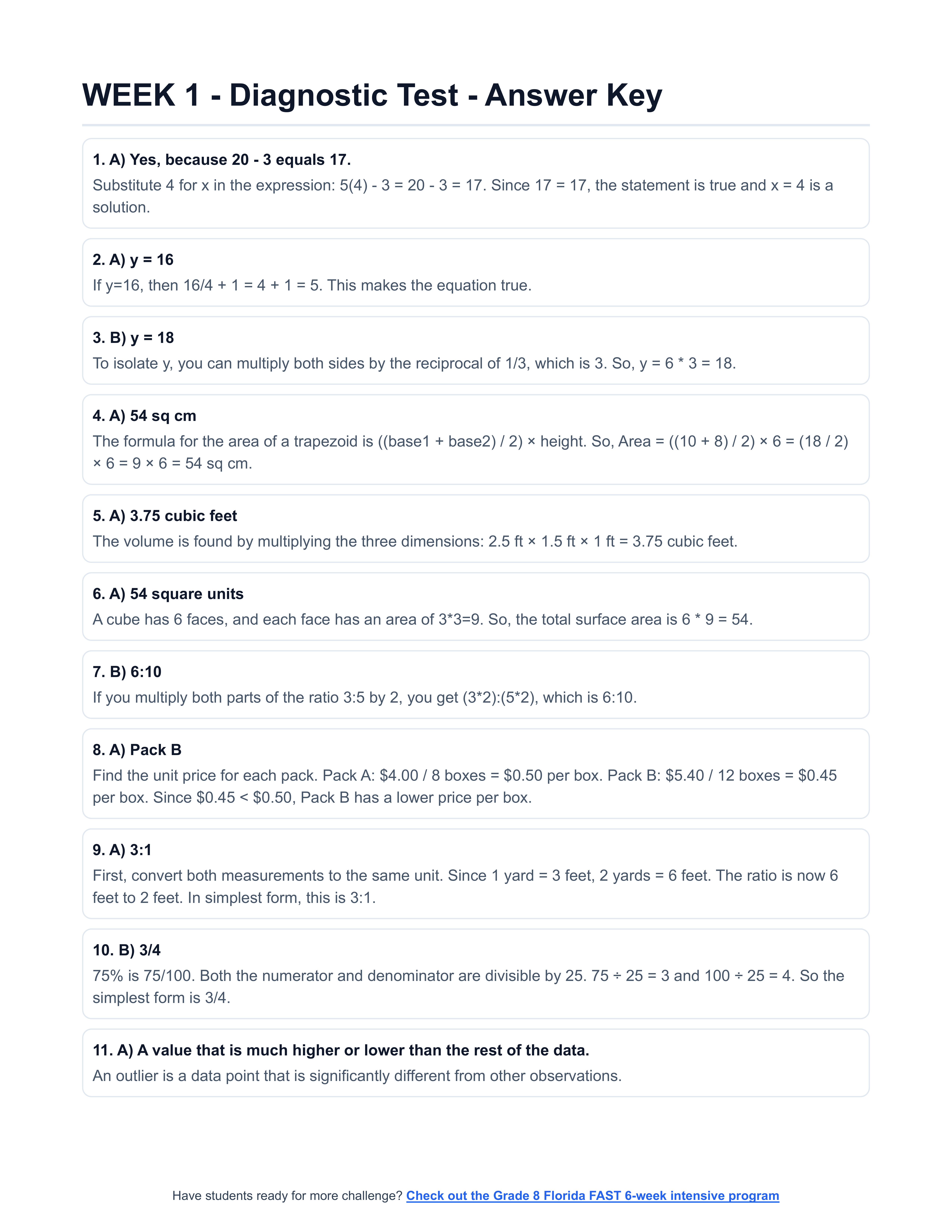 [Grade 8] Florida FAST Math | 6-Week Prep | All 4 Levels (PM3 Score 224-264+)