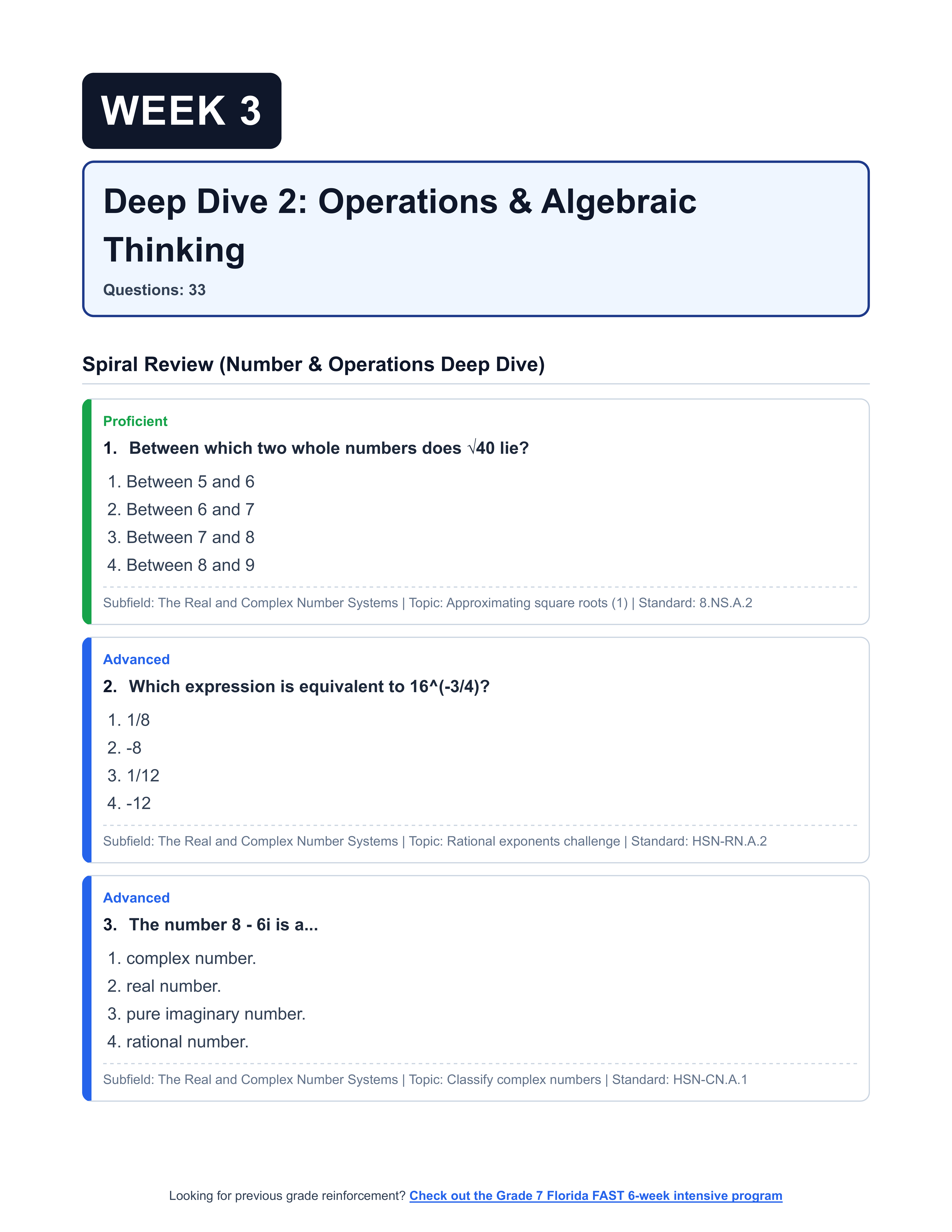 [Grade 7] Florida FAST Math | 6-Week Prep | All 4 Levels (PM3 Score 223-257+)