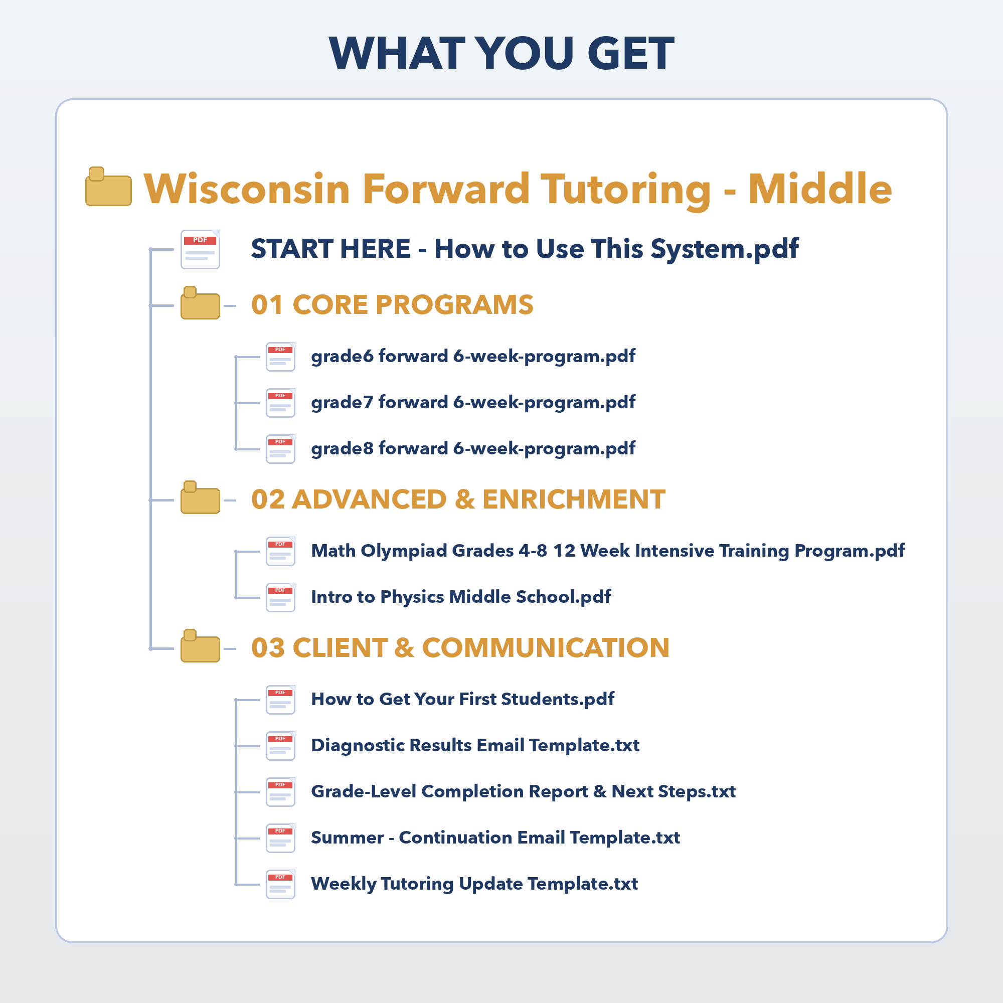 - Four email templates for parent communication: Simple, ready-to-use emails to share results, provide weekly updates, explain next steps, and guide parents toward continued tutoring in higher grades or the enrichment track.