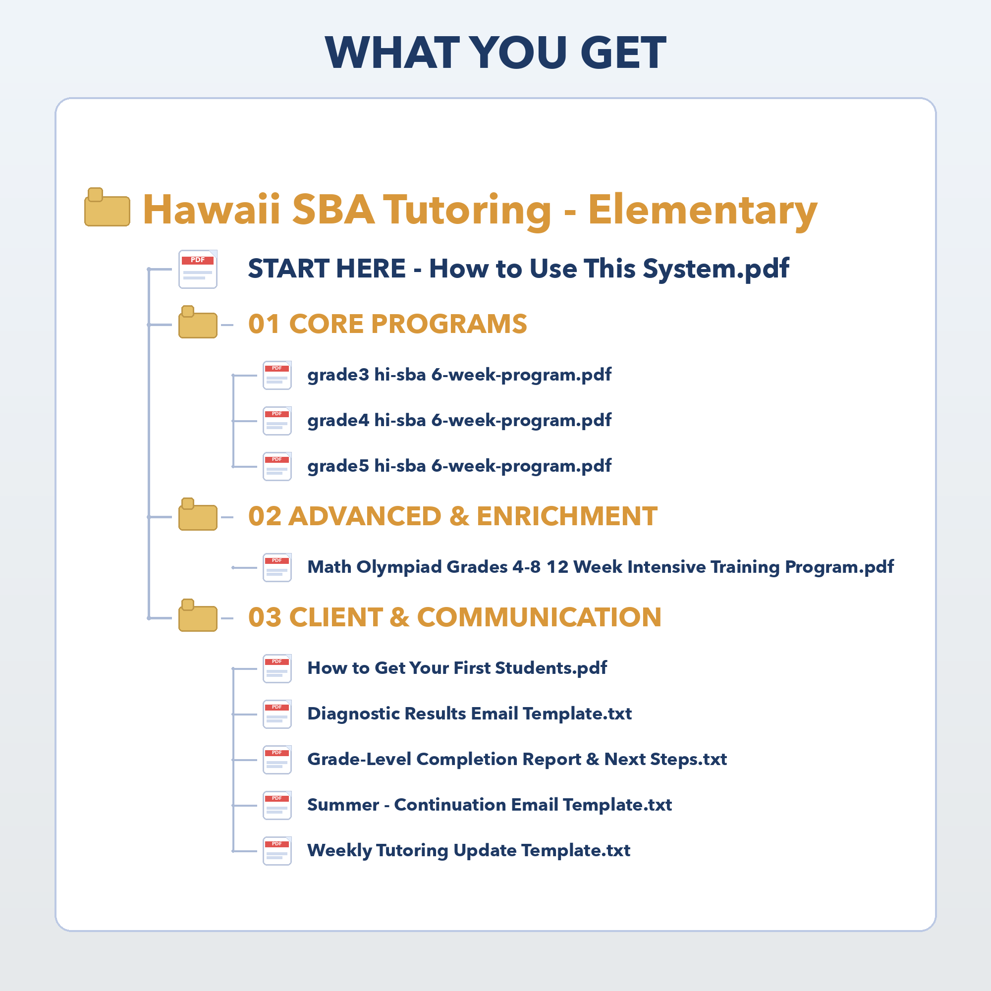 - Four email templates for parent communication: Simple, ready-to-use emails to share results, provide weekly updates, explain next steps, and guide parents toward continued tutoring in higher grades or the enrichment track.
