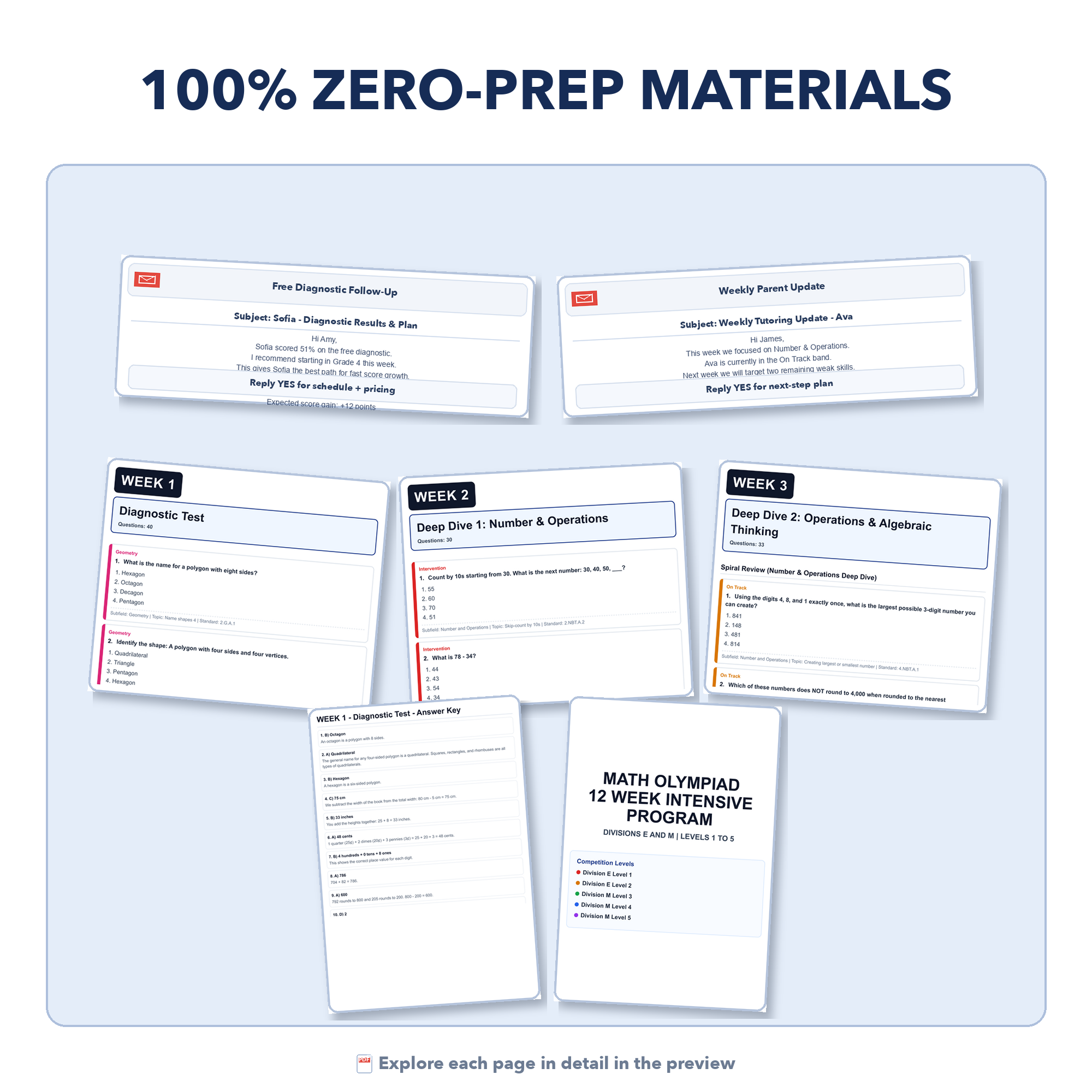 What do you do with students who ace the diagnostic? These are actually the best clients to have. Or how do you continue tutoring after test season, when you actually have more availability? The modules below are meant to solve this, without breaking the core principle: no 1:1 prep, just structured, print-and-go lessons.