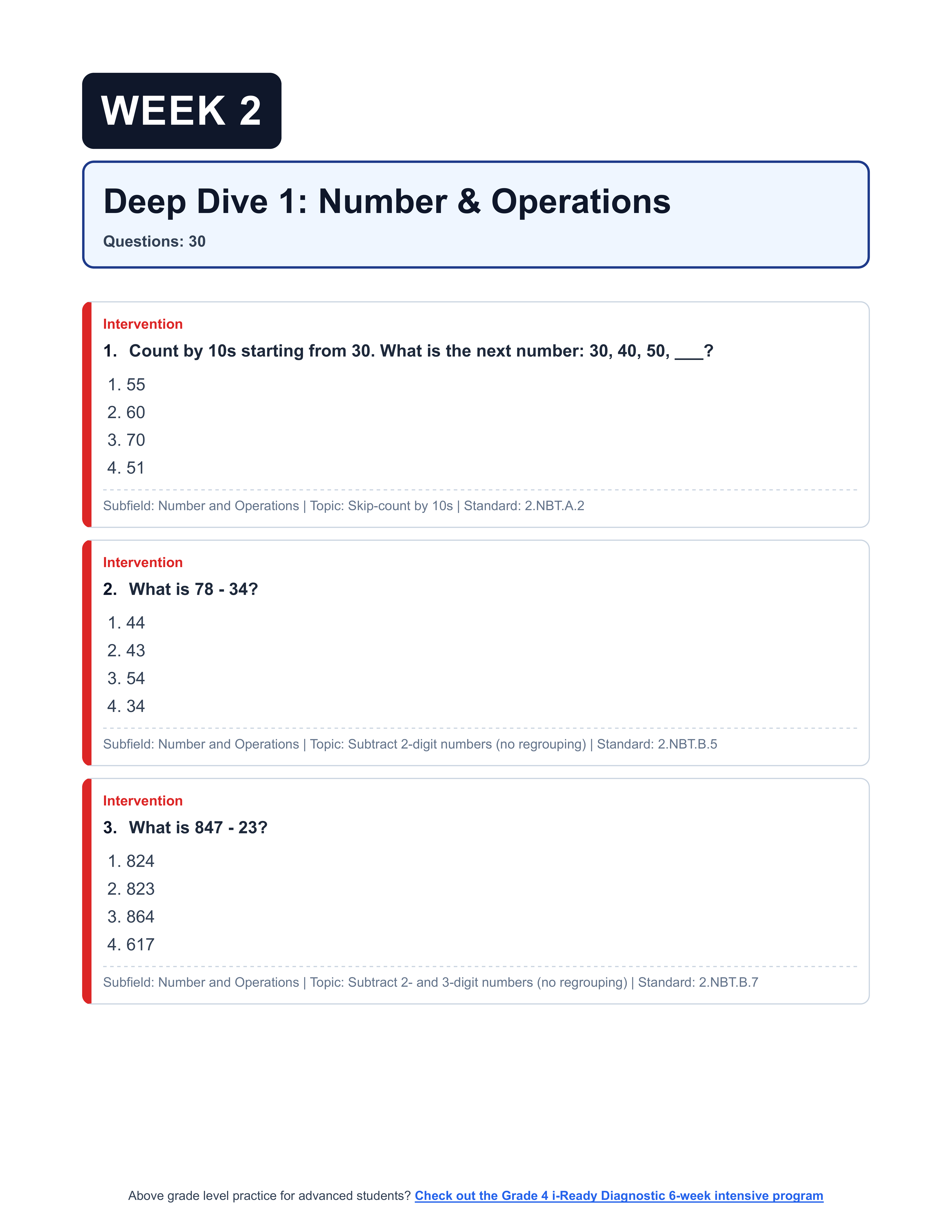 [Grade 2] i-Ready Diagnostic Math | 6-Week Test Prep | Scale Score 380-515