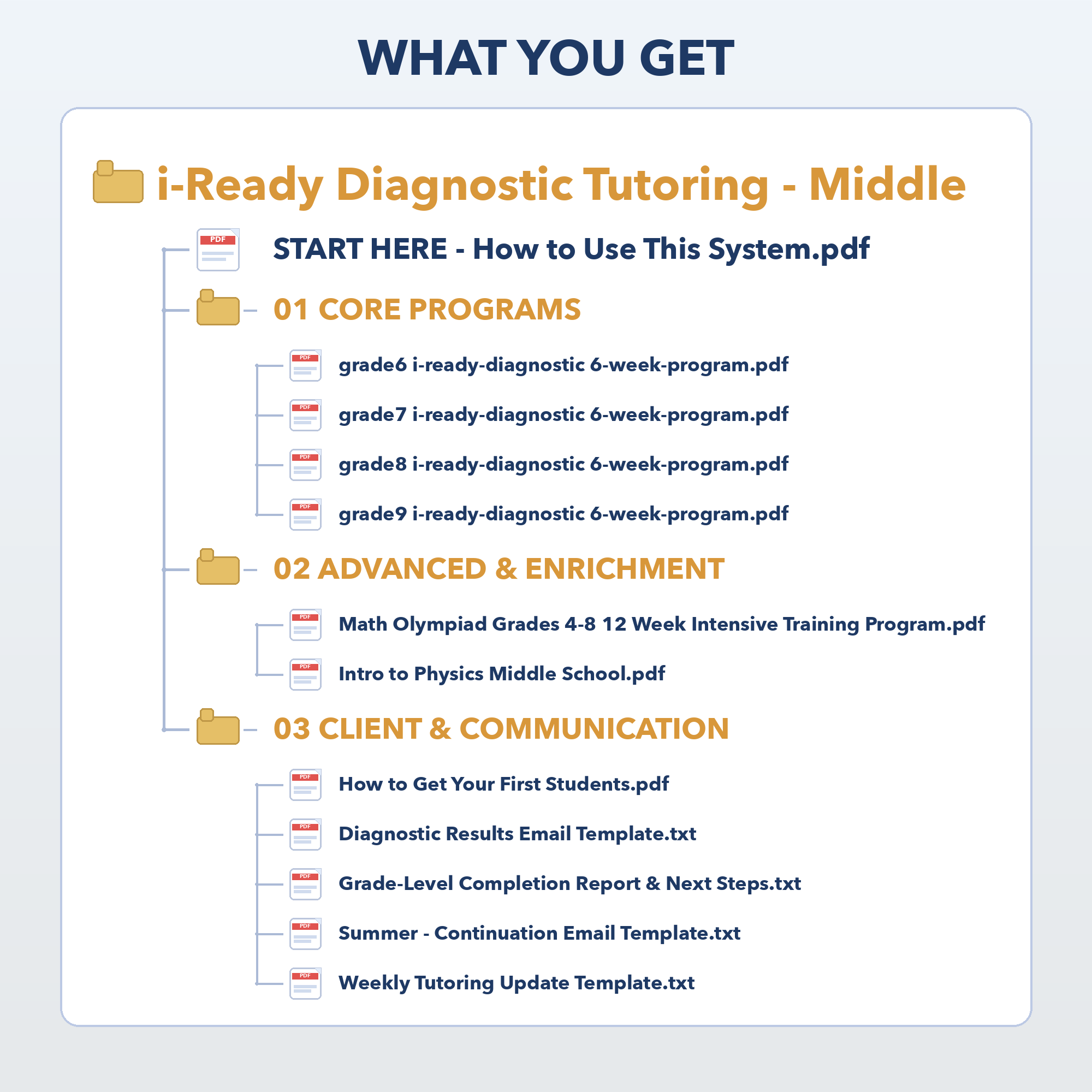 This is a complete, print-and-go tutoring system designed for multi-grade and small group i-Ready Diagnostic prep for Middle School (Grades 6-9). I built this bundle to solve the three main problems I kept running into while trying to grow my own tutoring side business: