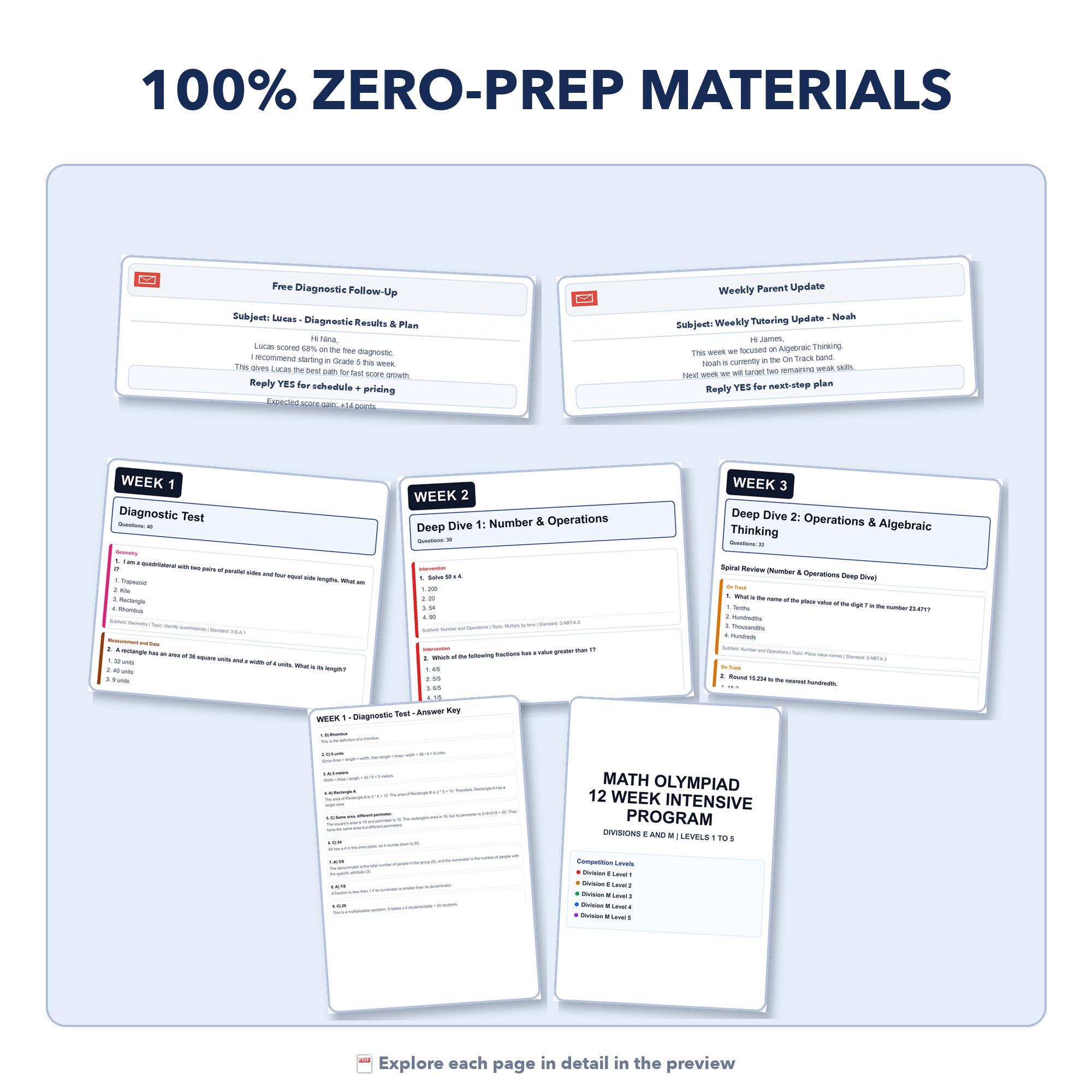 - Four email templates for parent communication: Simple, ready-to-use emails to share results, provide weekly updates, explain next steps, and guide parents toward continued tutoring in higher grades or the enrichment track.