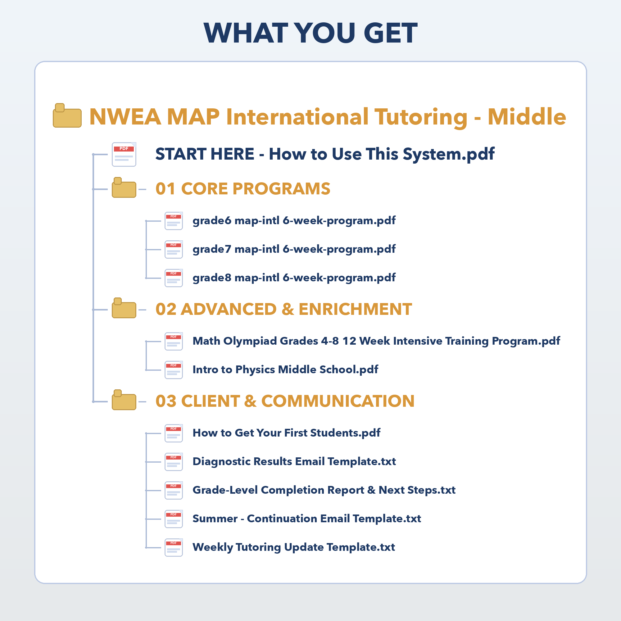 You get 3 complete, grade-specific intensive programs. Focusing on NWEA MAP International prep is crucial because it allows for a pre-defined structured program. Having multiple grades allows you to place a student where they need to be, run group sessions, and retain students over time by moving them to the next grade. This is essentially your core print-and-go lesson plan. Each grade includes: