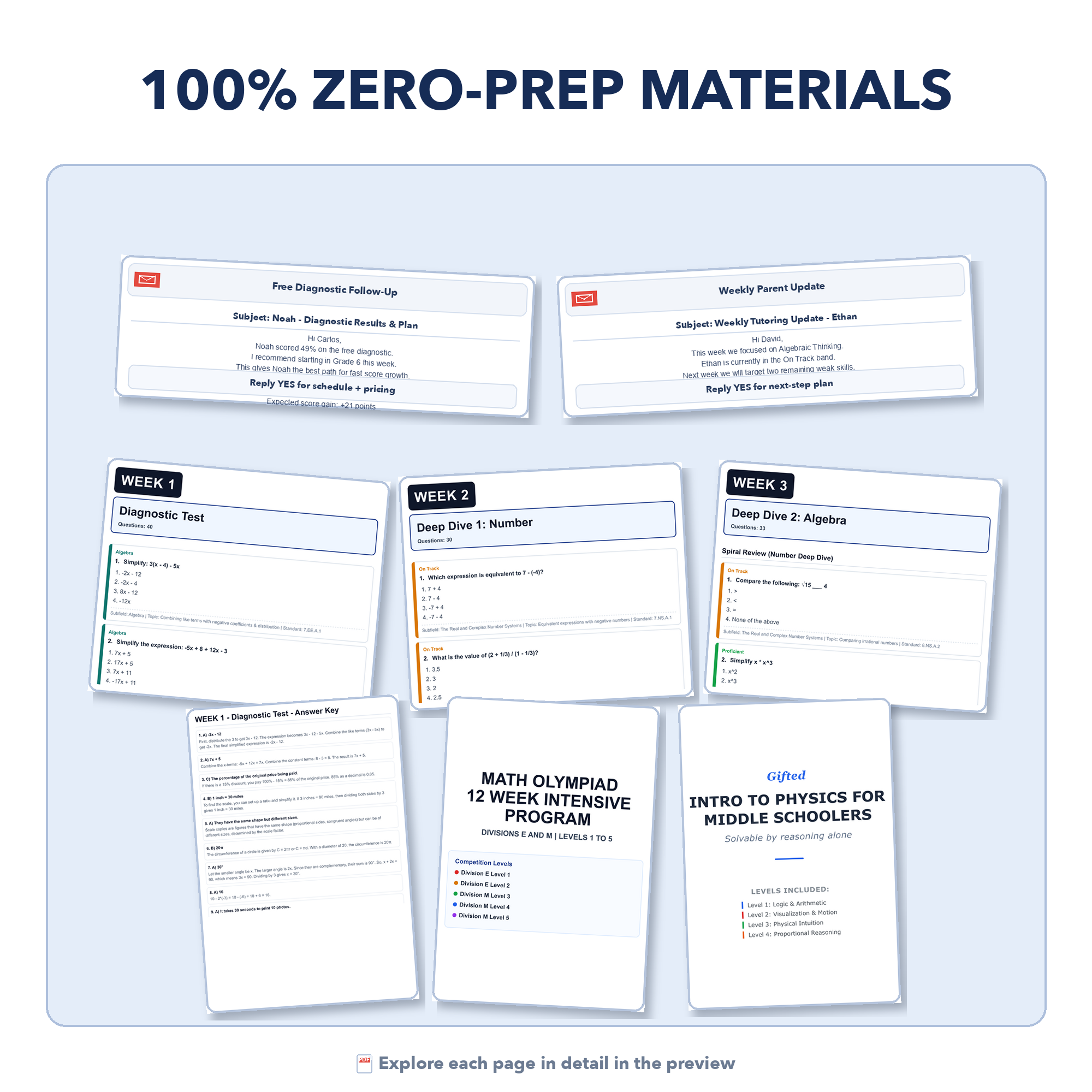 - Four email templates for parent communication: Simple, ready-to-use emails to share results, provide weekly updates, explain next steps, and guide parents toward continued tutoring in higher grades or the enrichment track.