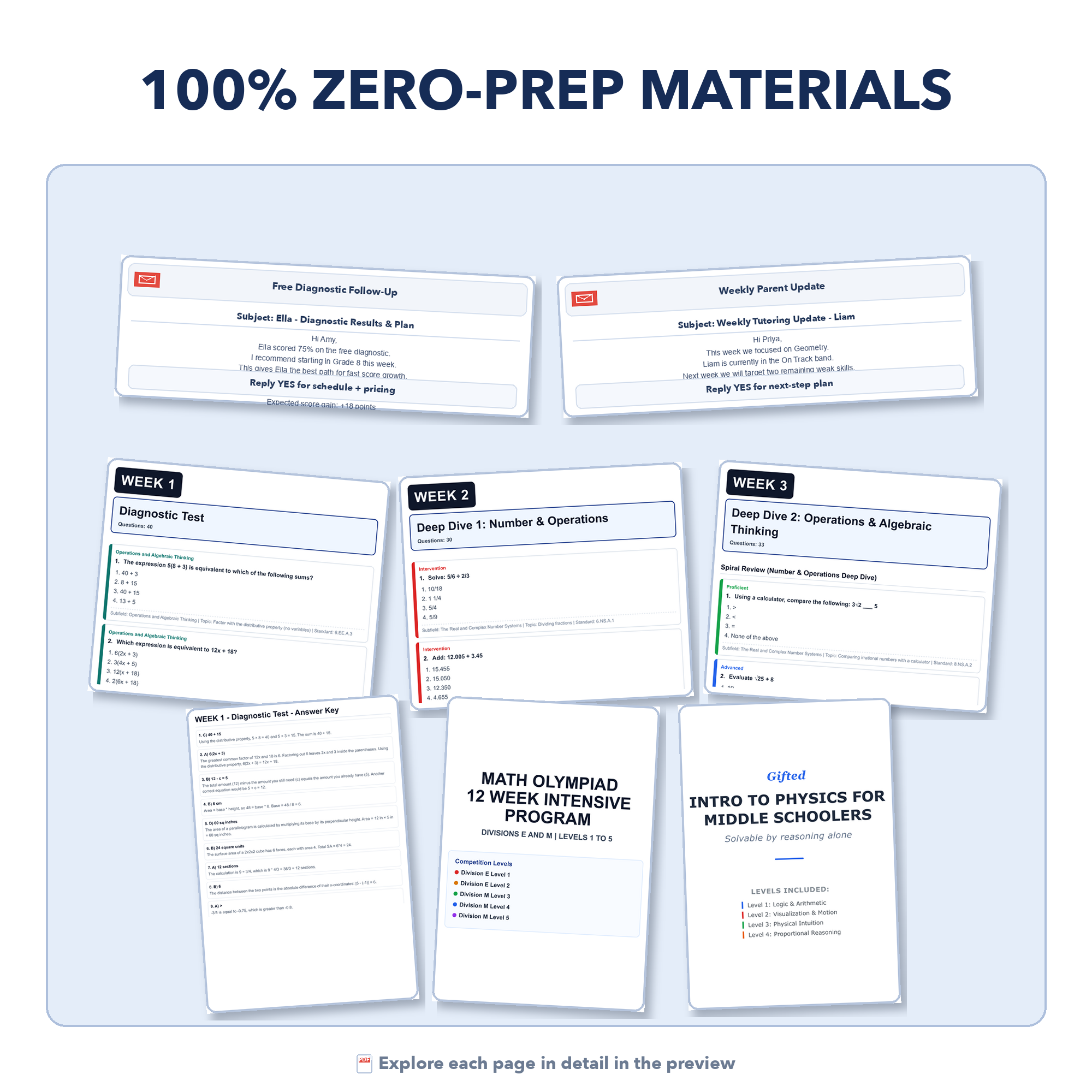 What do you do with students who ace the diagnostic? These are actually the best clients to have. Or how do you continue tutoring after test season, when you actually have more availability? The modules below are meant to solve this, without breaking the core principle: no 1:1 prep, just structured, print-and-go lessons.