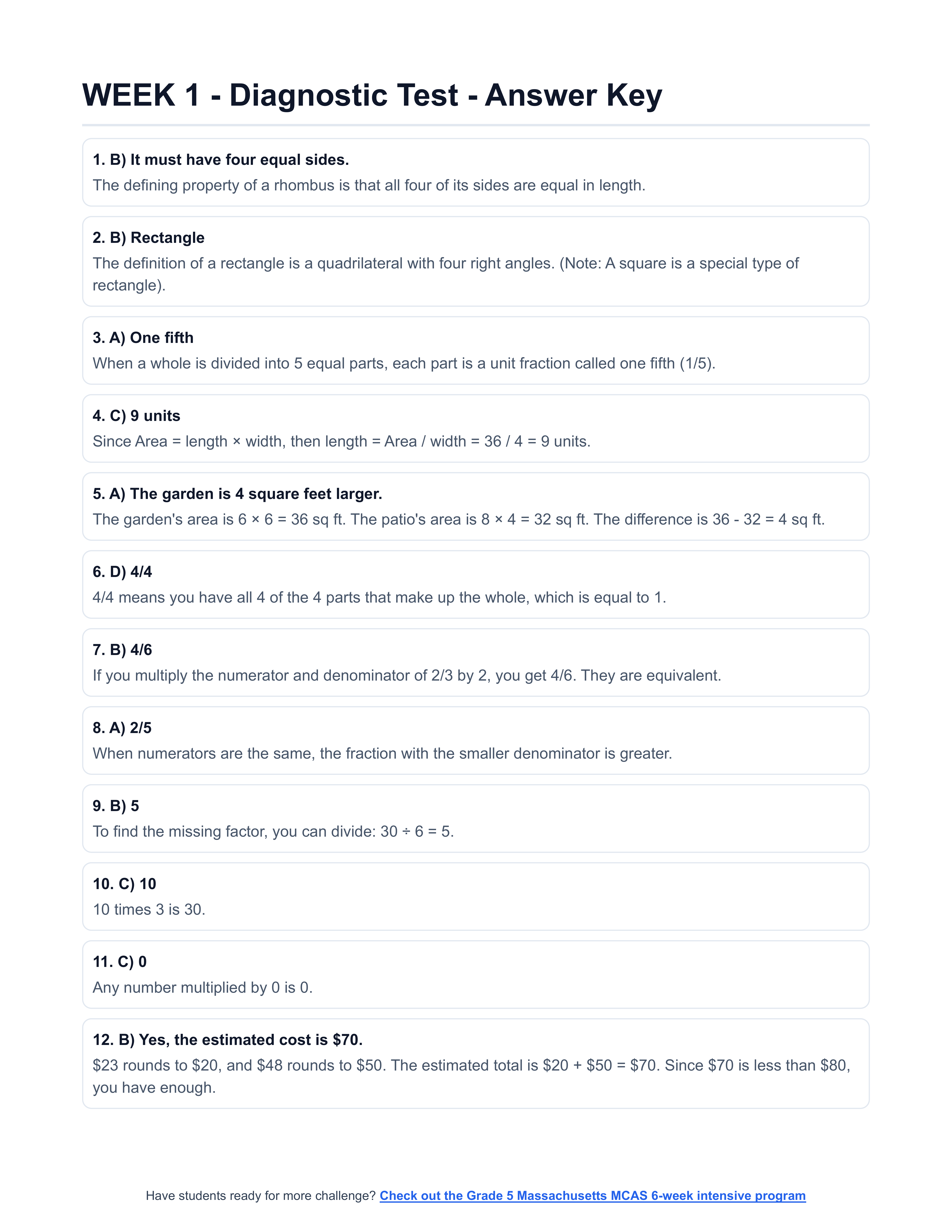 [Grade 5] Massachusetts MCAS Math | 6-Week Test Prep | Scale Score 440-560