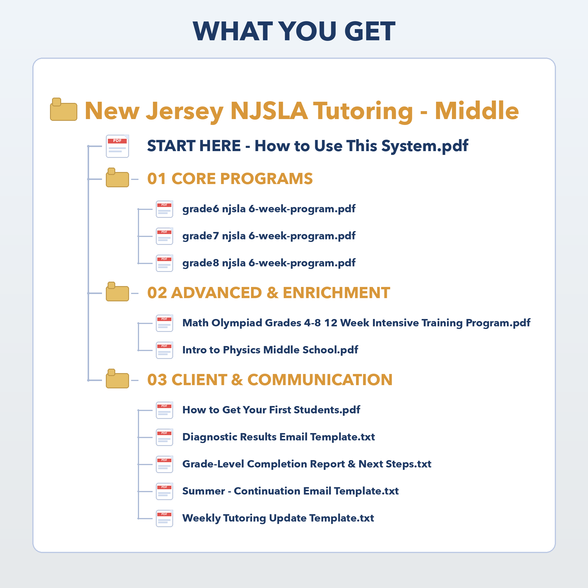 You get 3 complete, grade-specific intensive programs. Focusing on New Jersey NJSLA prep is crucial because it allows for a pre-defined structured program. Having multiple grades allows you to place a student where they need to be, run group sessions, and retain students over time by moving them to the next grade. This is essentially your core print-and-go lesson plan. Each grade includes: