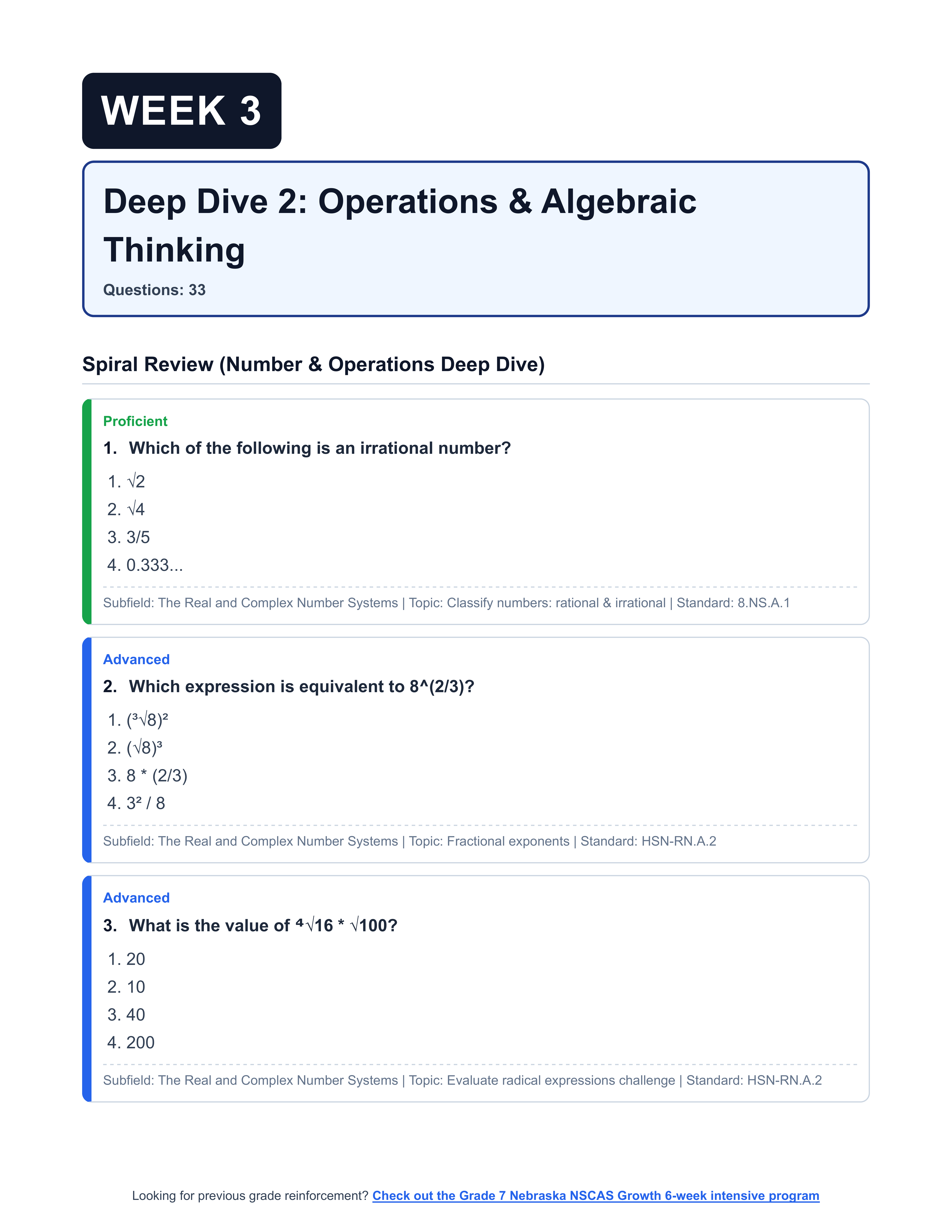 [Grade 8] Nebraska NSCAS Growth Math | 6-Week Test Prep | Scale Score 1050-1550