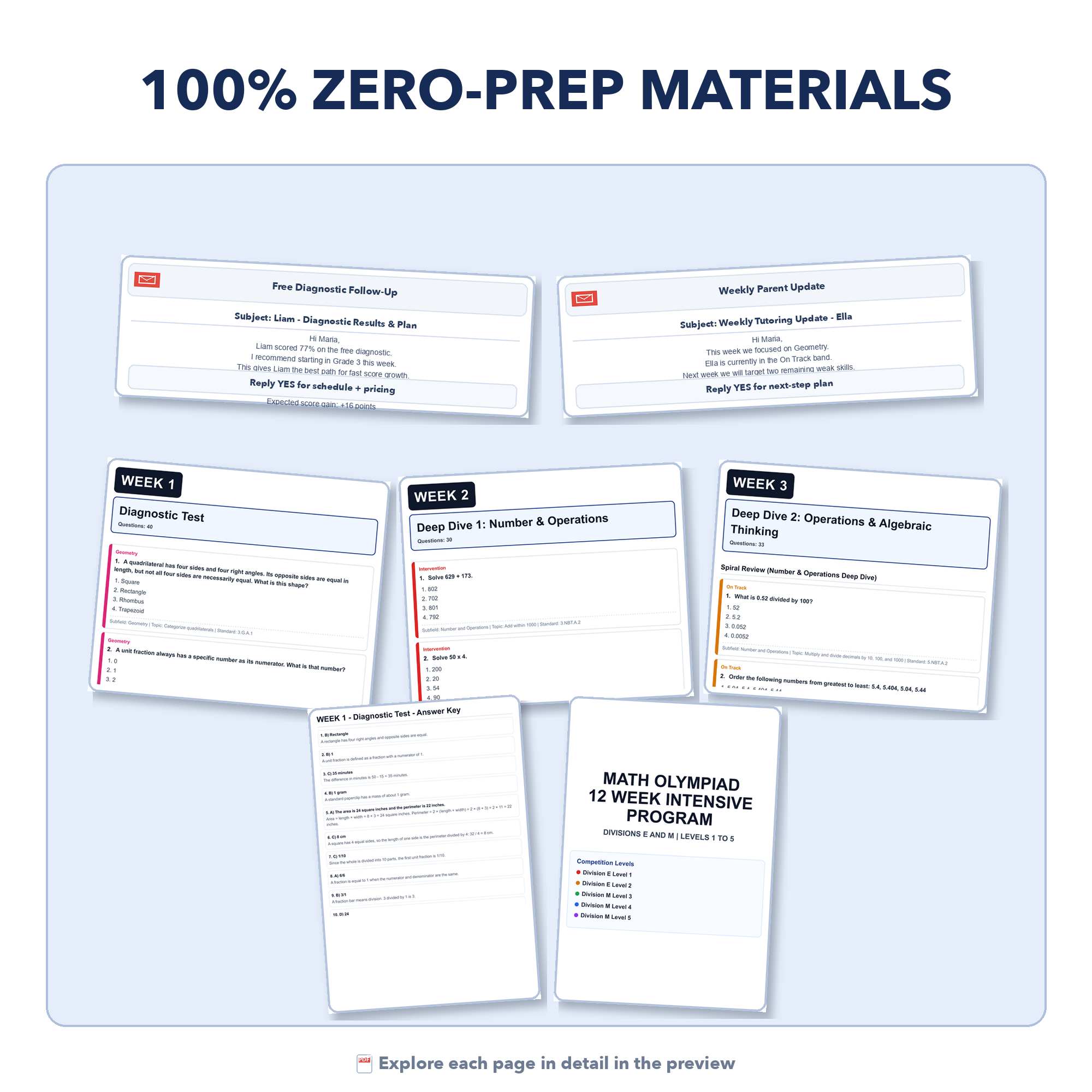 - Four email templates for parent communication: Simple, ready-to-use emails to share results, provide weekly updates, explain next steps, and guide parents toward continued tutoring in higher grades or the enrichment track.
