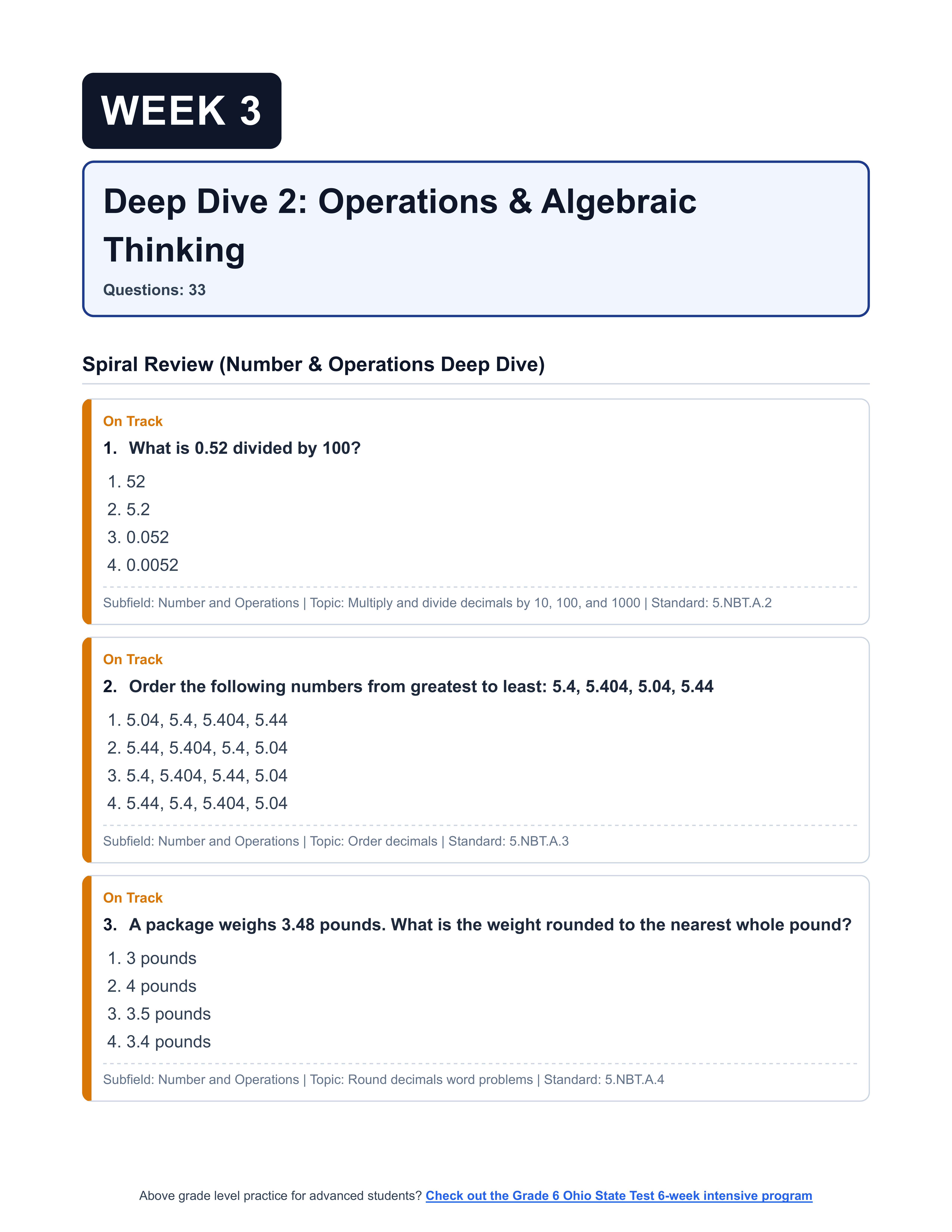 [Grade 5] Ohio State Test Math | 6-Week Test Prep | Scaled Score 605-725+