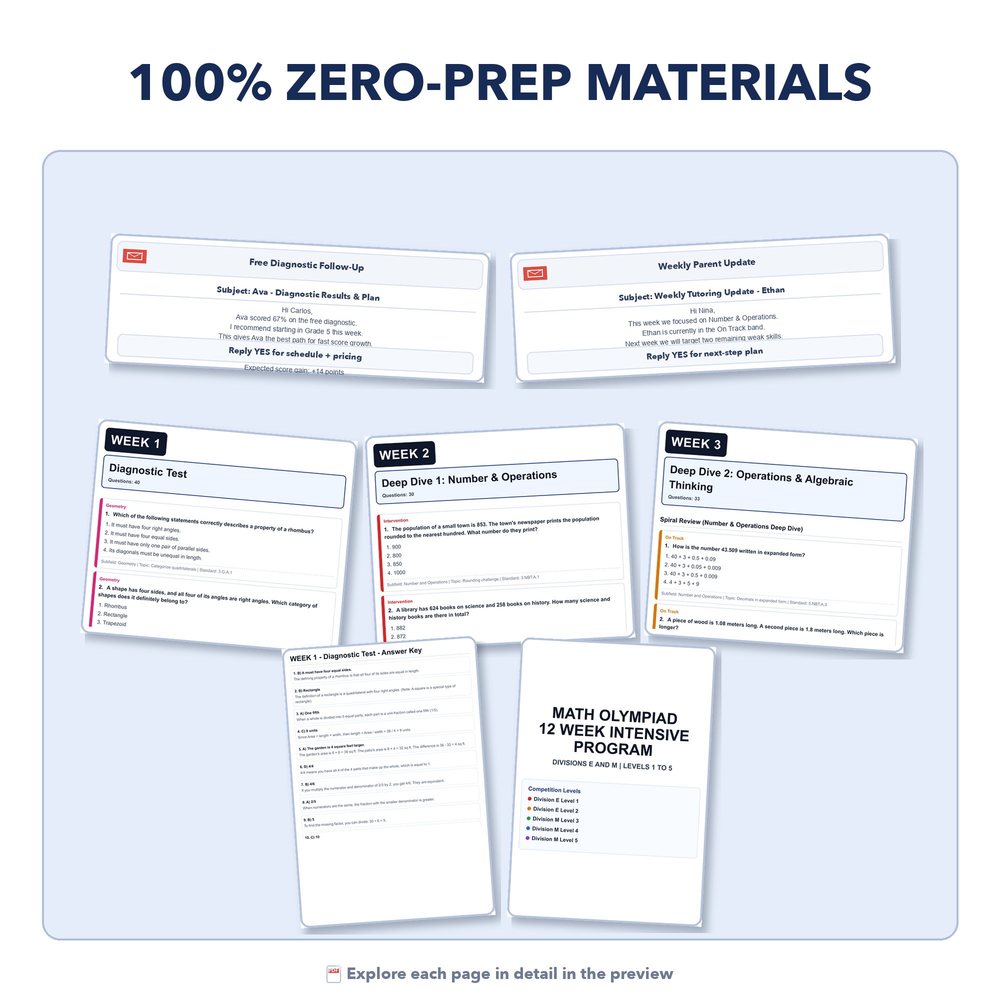 - Four email templates for parent communication: Simple, ready-to-use emails to share results, provide weekly updates, explain next steps, and guide parents toward continued tutoring in higher grades or the enrichment track.