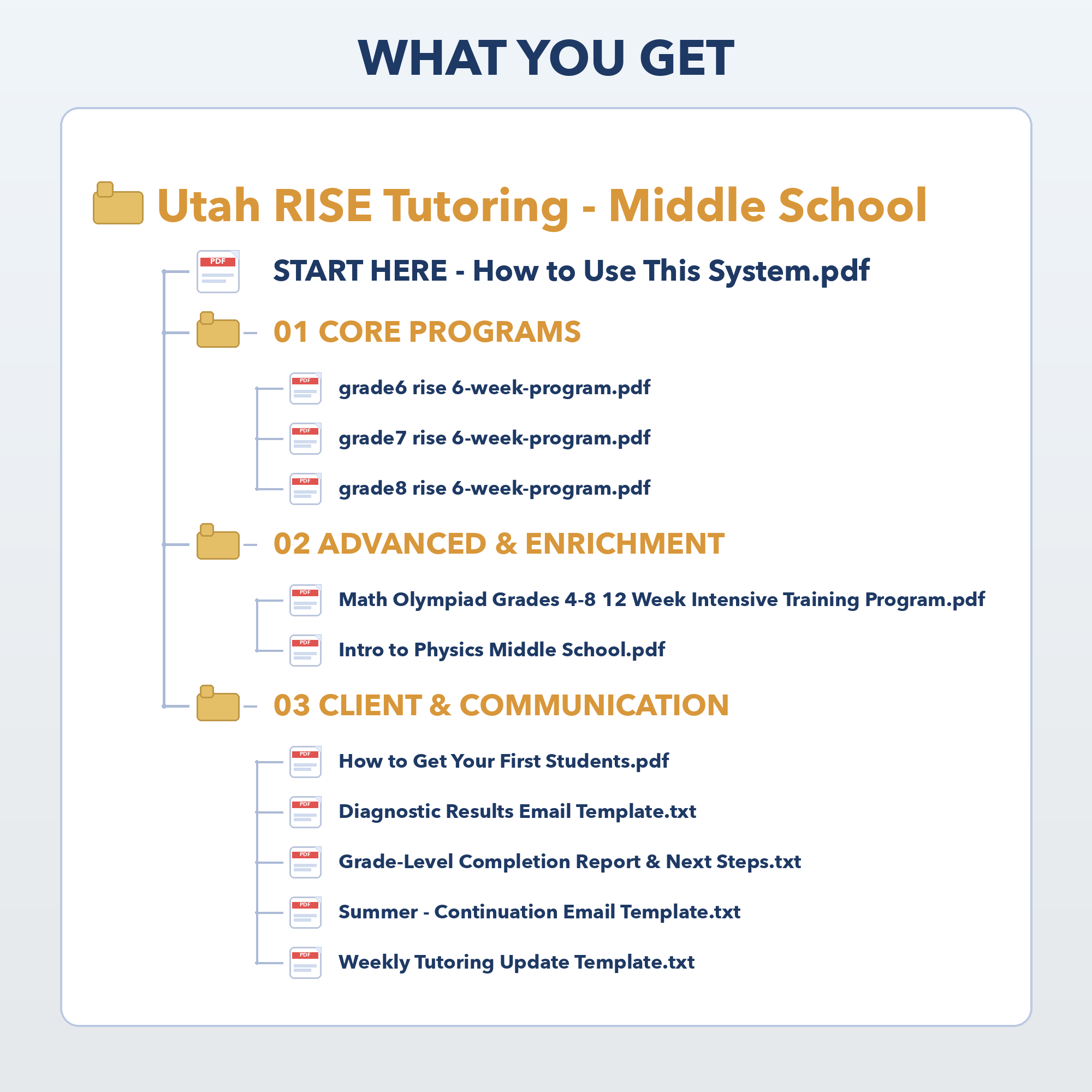 You get 3 complete, grade-specific intensive programs. Focusing on Utah RISE prep is crucial because it allows for a pre-defined structured program. Having multiple grades allows you to place a student where they need to be, run group sessions, and retain students over time by moving them to the next grade. This is essentially your core print-and-go lesson plan. Each grade includes: