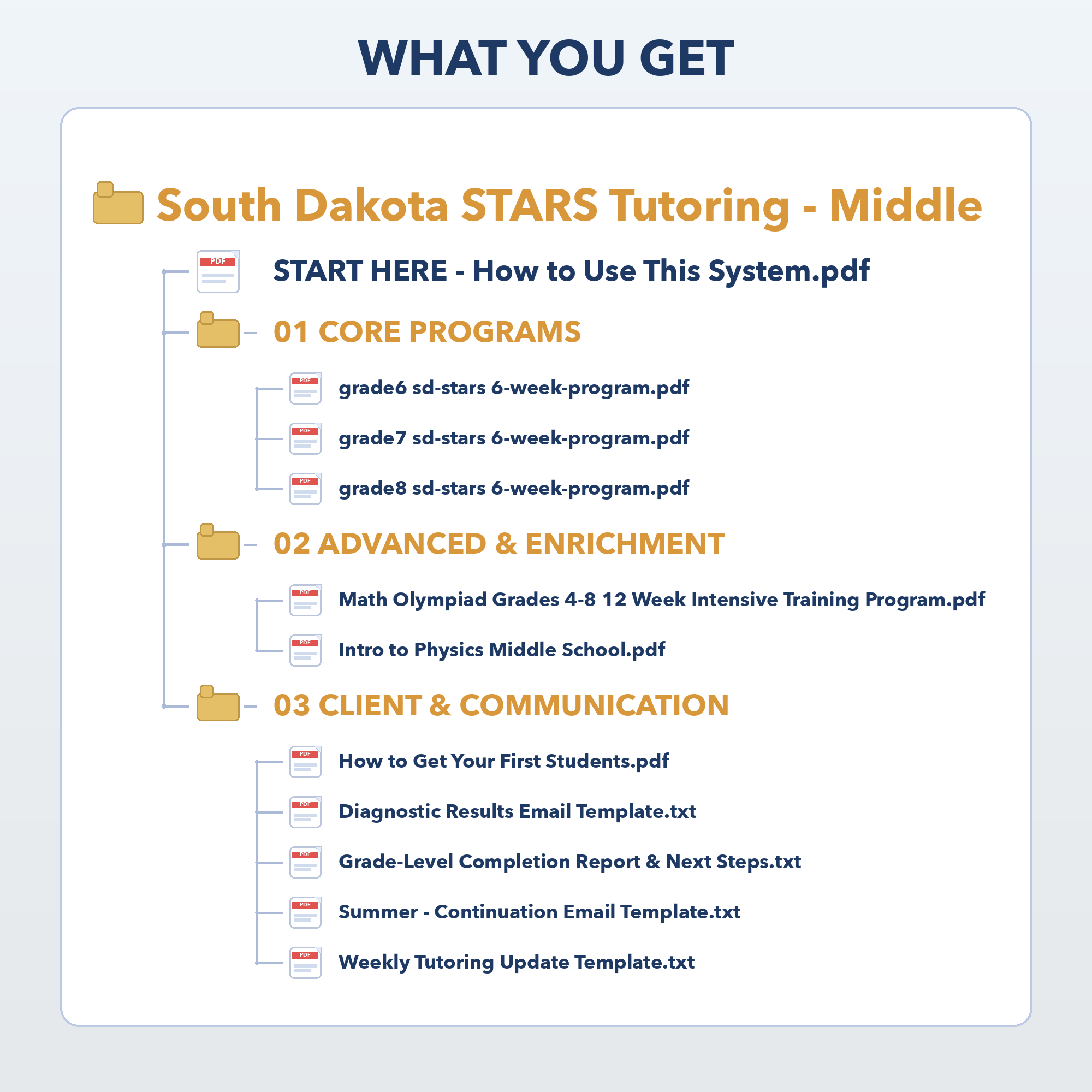 - Four email templates for parent communication: Simple, ready-to-use emails to share results, provide weekly updates, explain next steps, and guide parents toward continued tutoring in higher grades or the enrichment track.