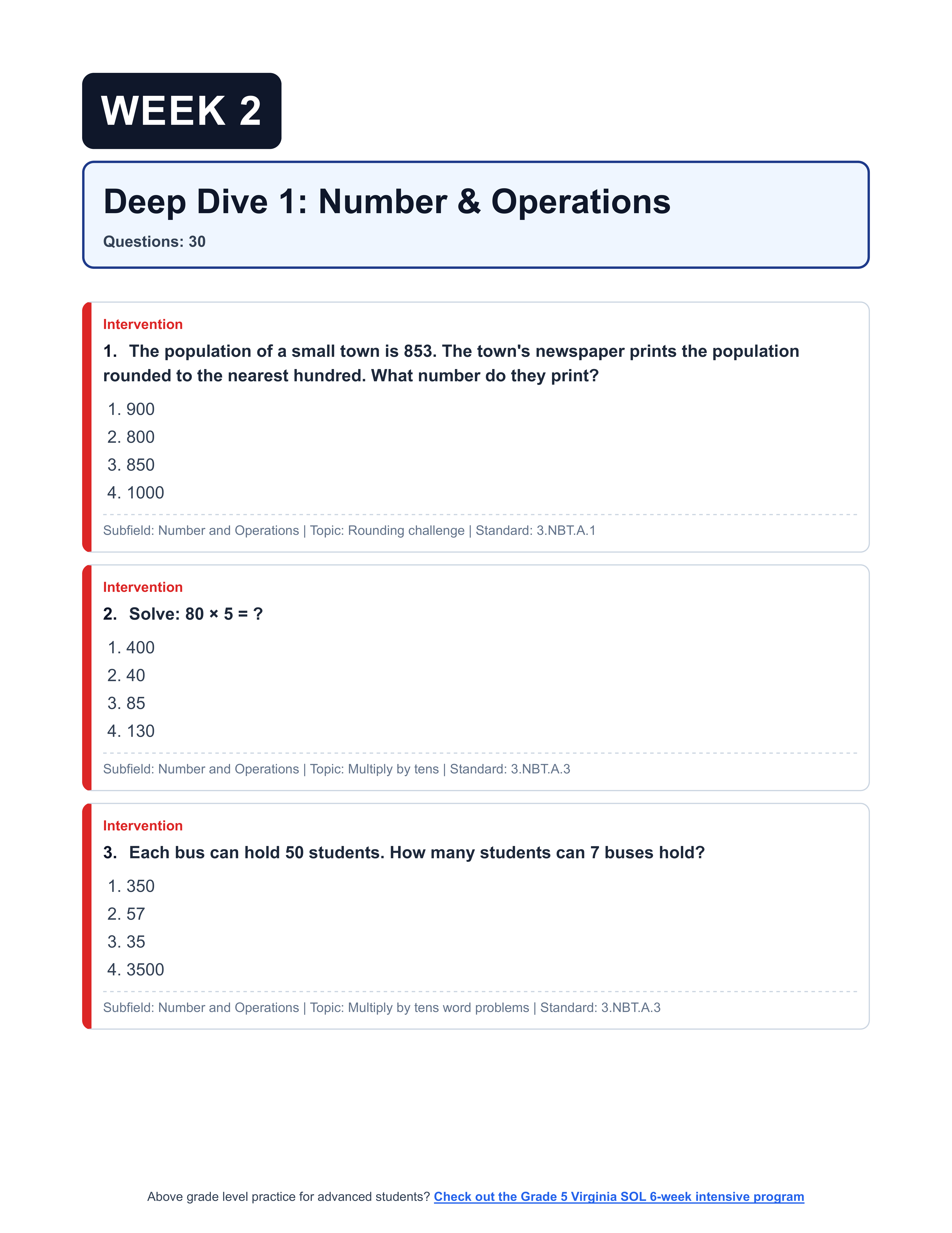 [Grade 3] Virginia SOL Math | 6-Week Prep | All 4 Levels (Scaled Score 400-500+)
