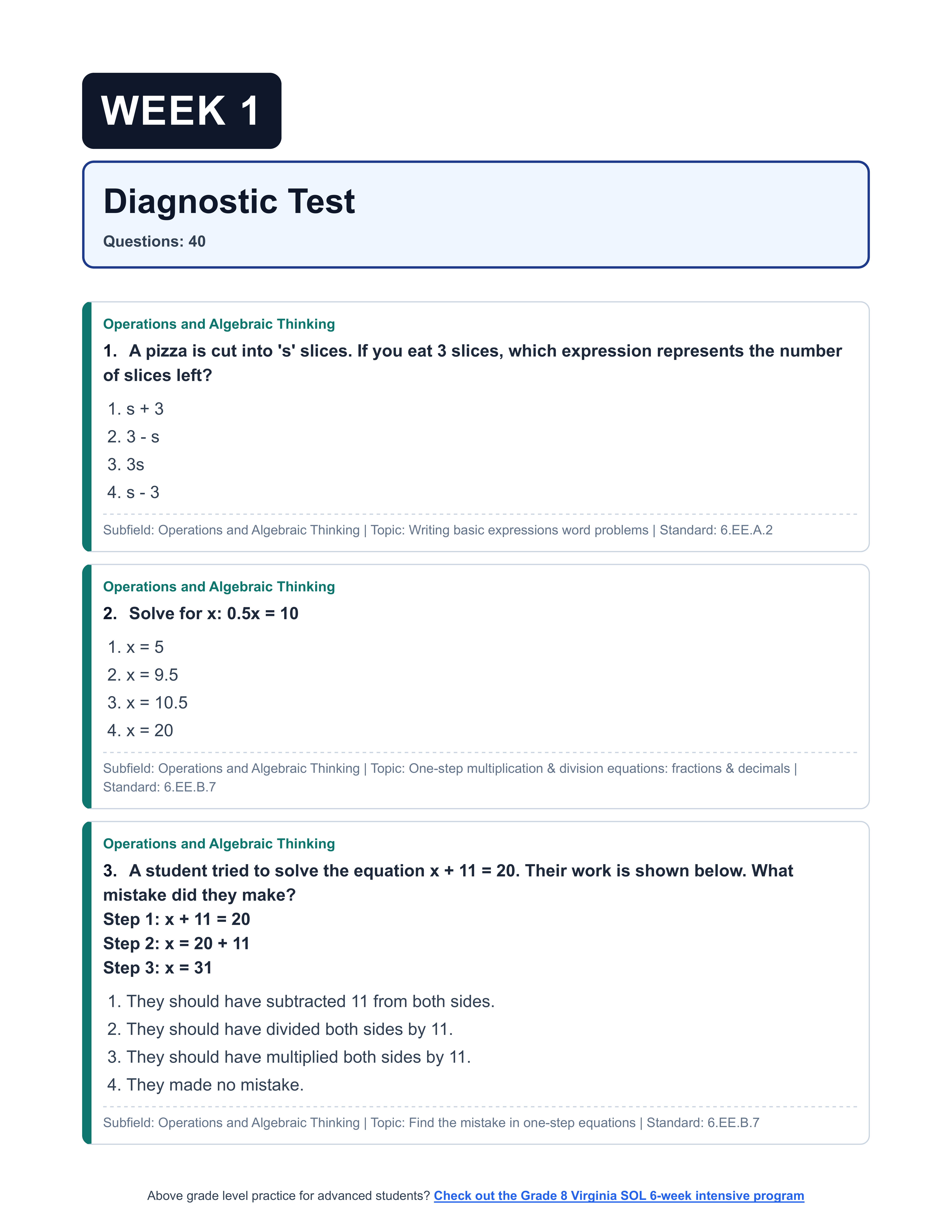 [Grade 6] Virginia SOL Math | 6-Week Prep | All 4 Levels (Scaled Score 400-500+)