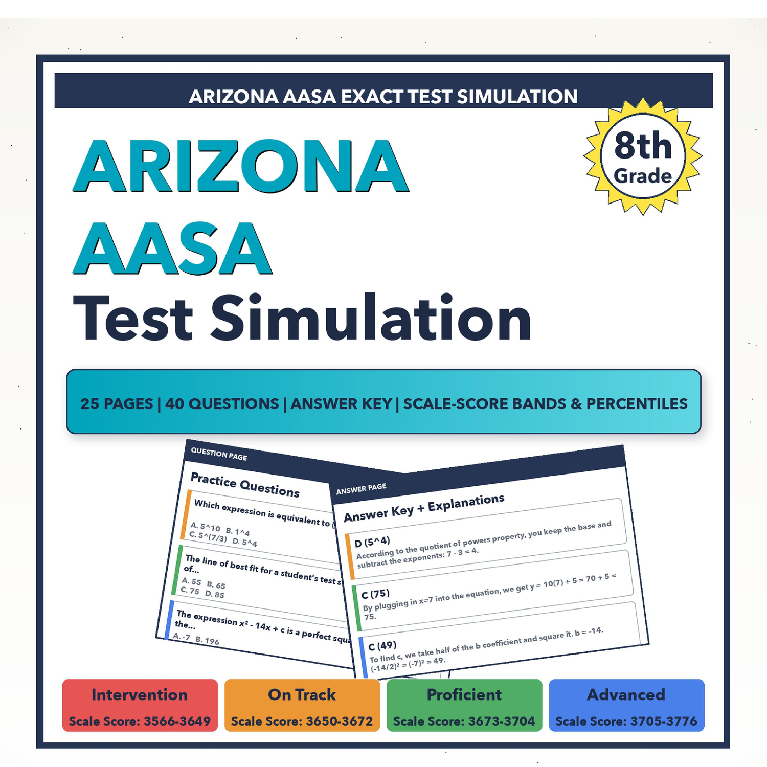 [Grade 8] Arizona AASA Math | 6-Week Prep | All 4 Levels (Scale Score 3566-3776)