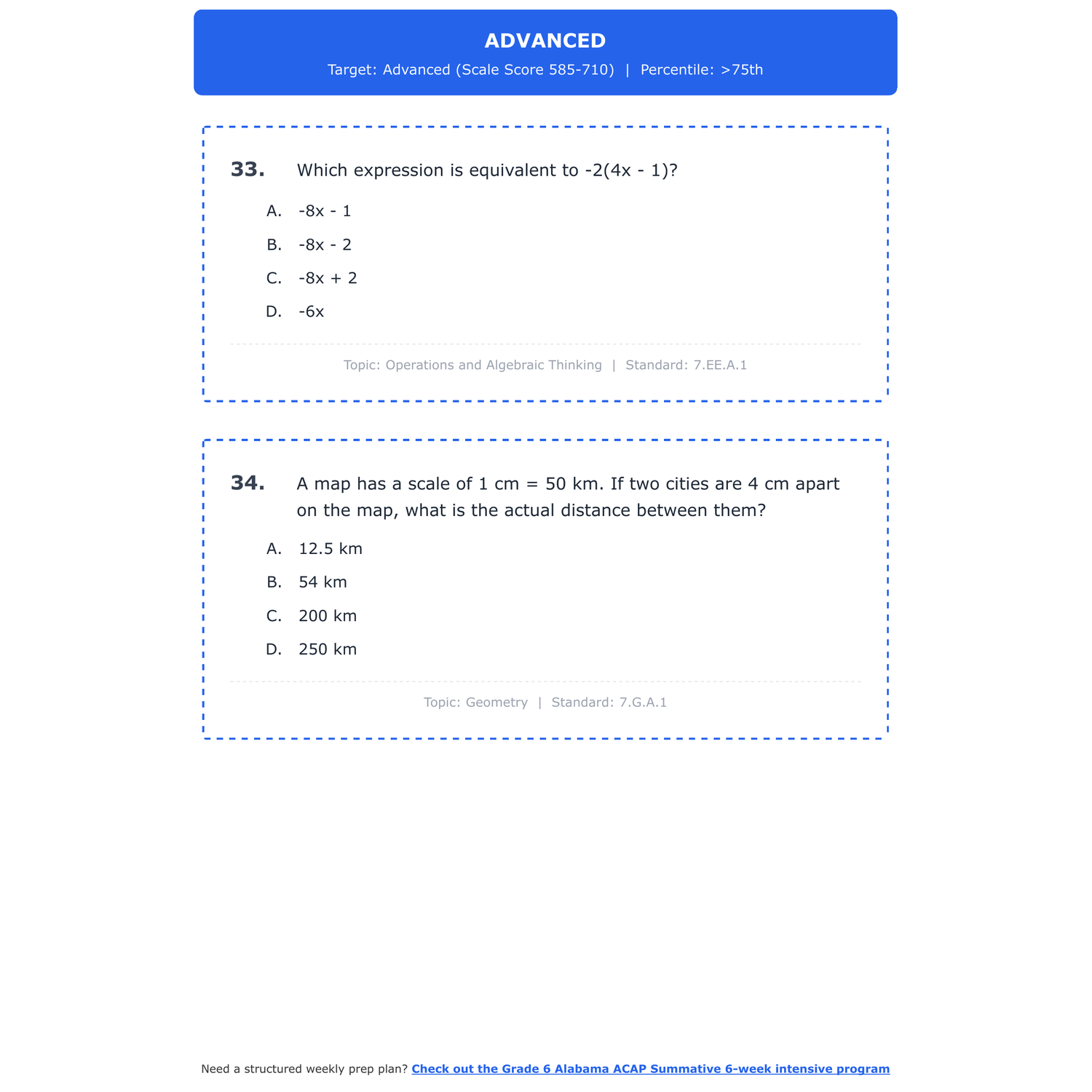 [Grade 7] Alabama ACAP Summative Math | 6-Week Test Prep | Scale Score 300-750