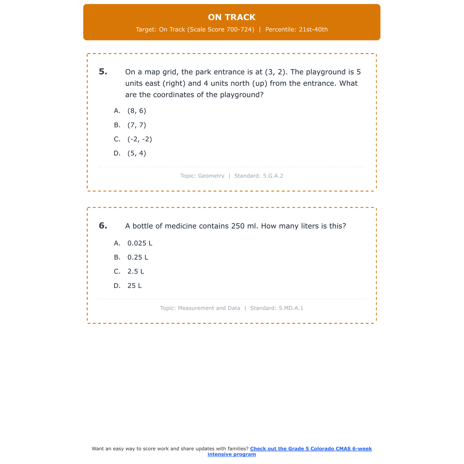 [Grade 5] Colorado CMAS Math | 6-Week Prep | All 4 Levels (Scale Score 650-850)