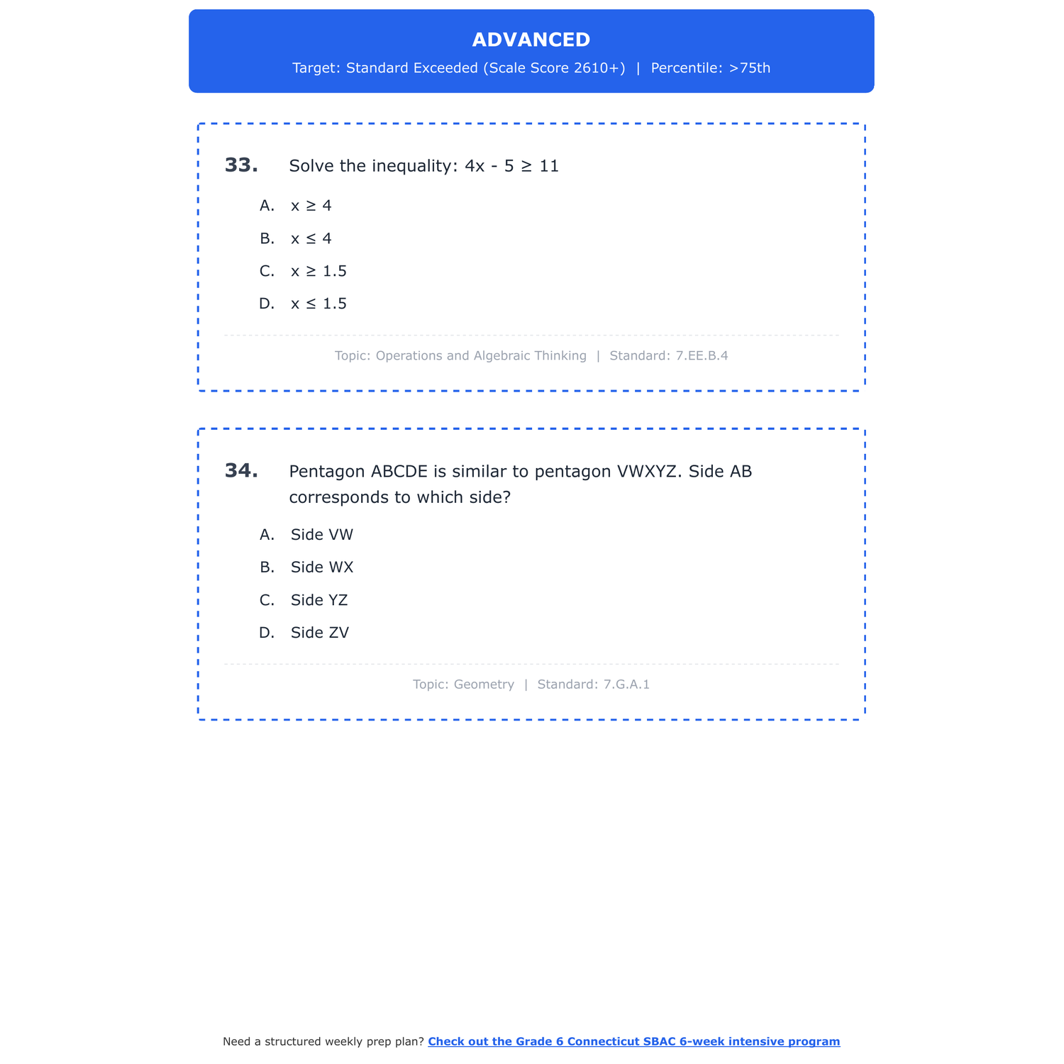 [Grade 7] Connecticut SBAC Math | 6-Week Test Prep | Scale Score 2484-2635+