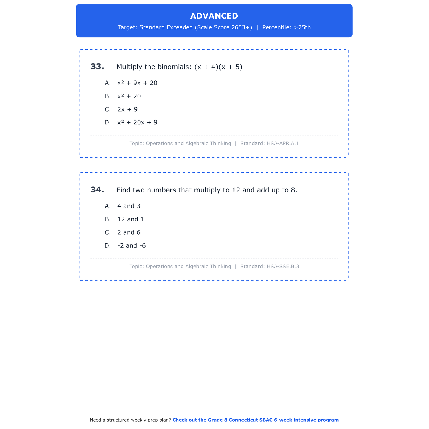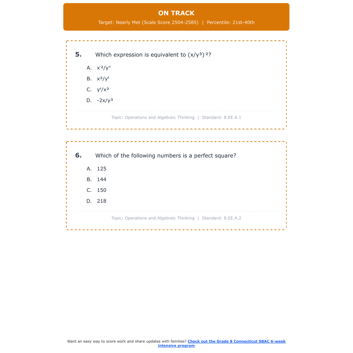 [Grade 8] Connecticut SBAC Math | 6-Week Test Prep | Scale Score 2504-2653+