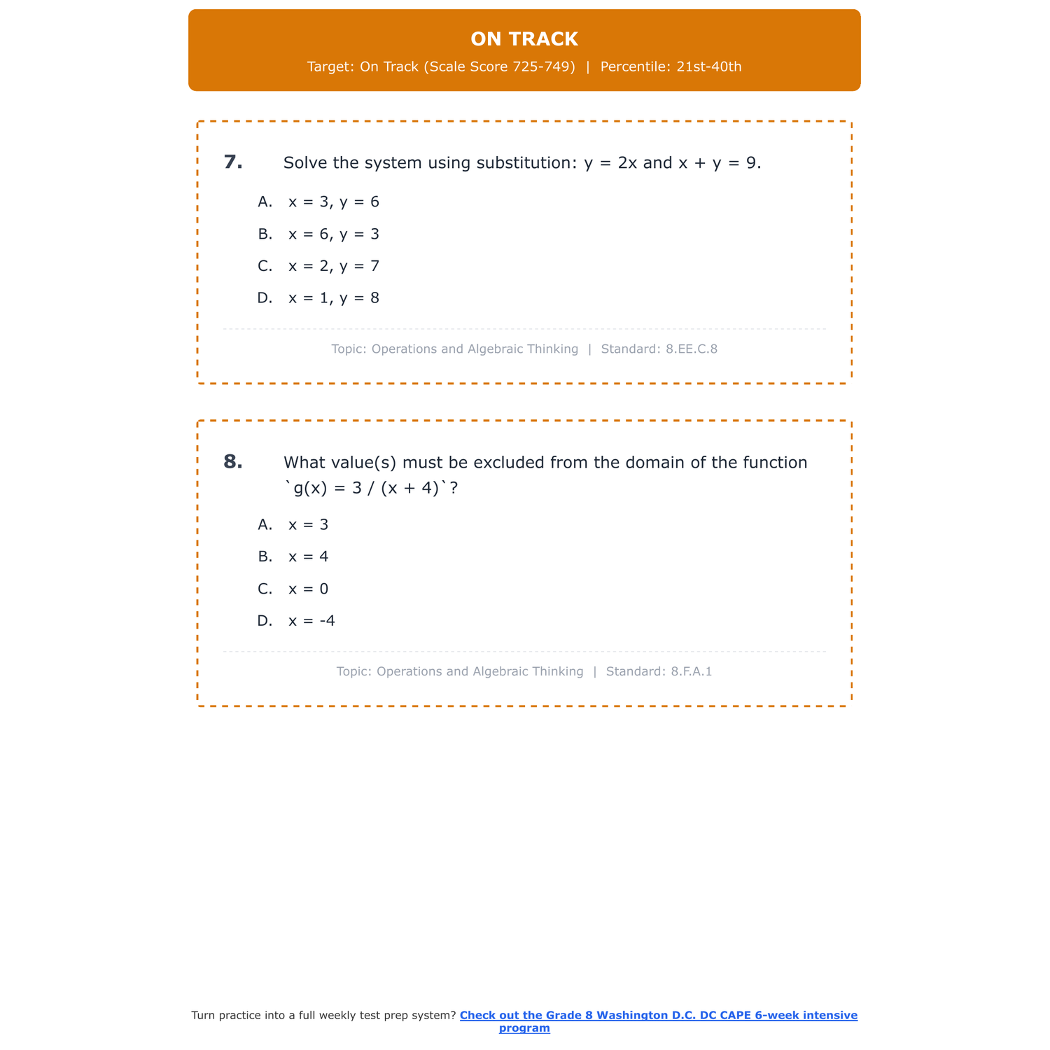 [Grade 8] Washington D.C. DC CAPE Math | 6-Week Test Prep | Scale Score 650-850