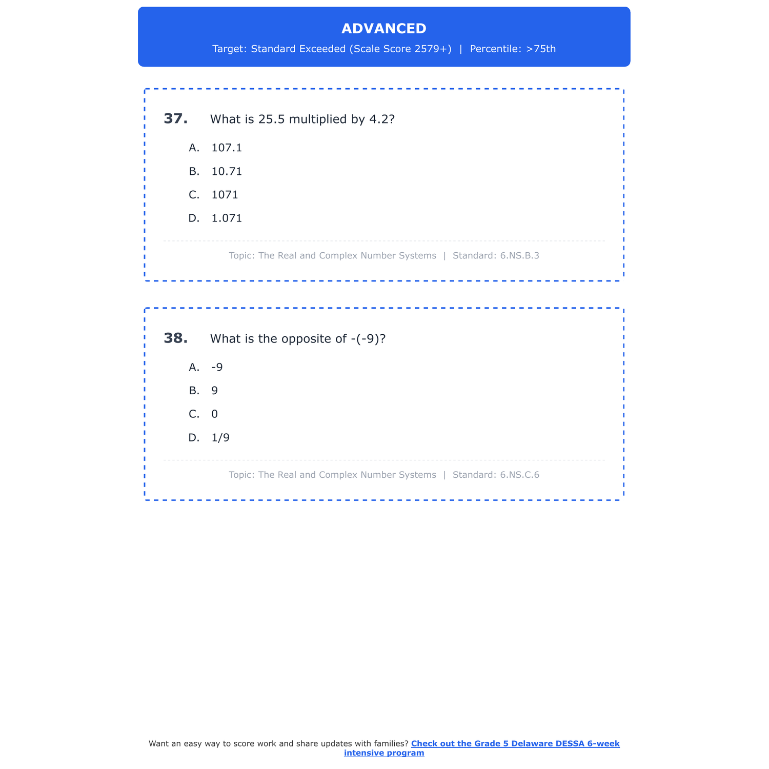 [Grade 6] Delaware DESSA Math | 6-Week Test Prep | Scale Score 2473-2610+