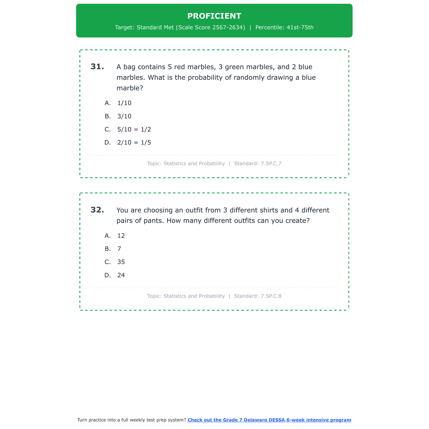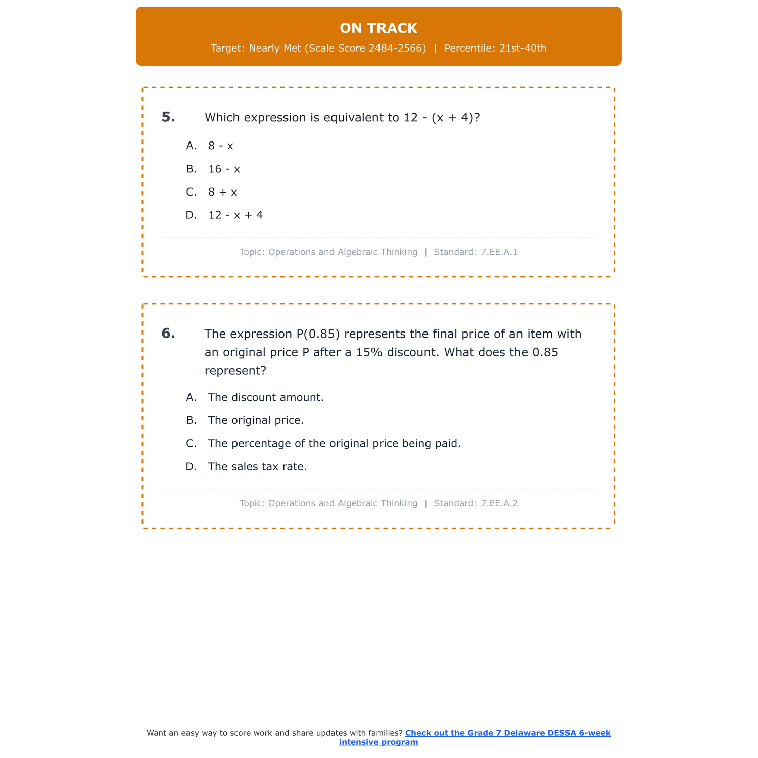 [Grade 7] Delaware DESSA Math | 6-Week Test Prep | Scale Score 2484-2635+