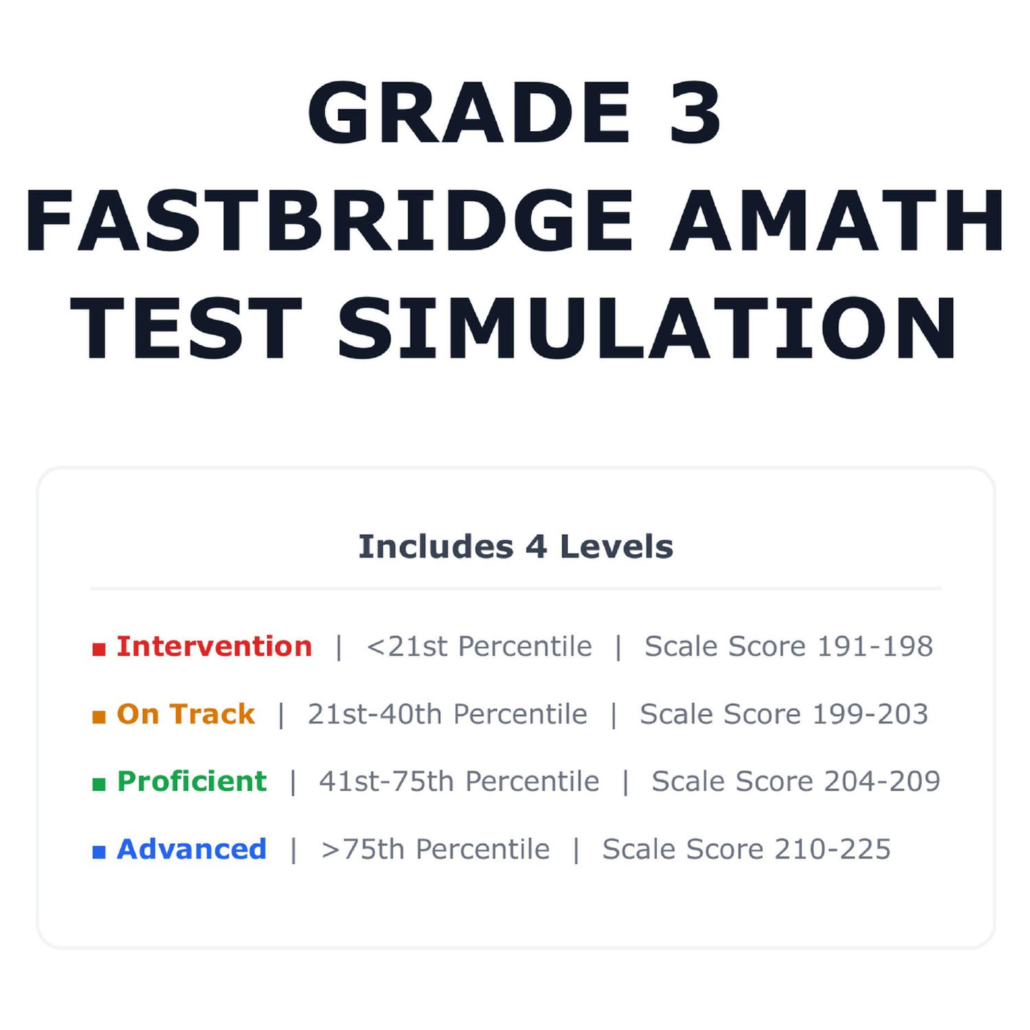 A fun and effective way to prepare 3rd graders for the FastBridge aMath standardized test. This resource makes it very easy to identify each student level and maximize growth and test scores. It’s designed to be used as a traditional practice test or as a fun board game to keep your students engaged.