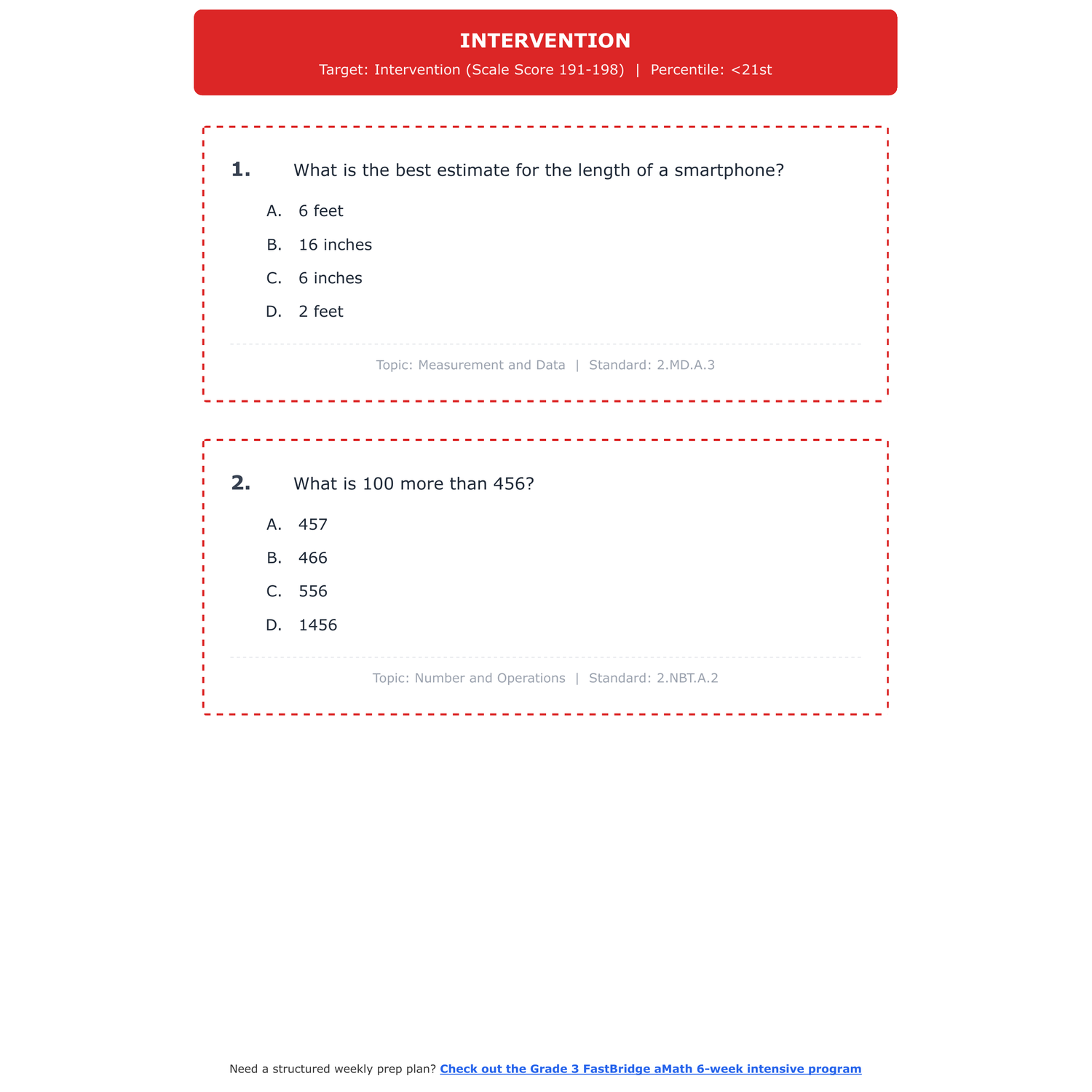 [Grade 2] FastBridge aMath Math | 6-Week Test Prep Program | Scale Score 189-216